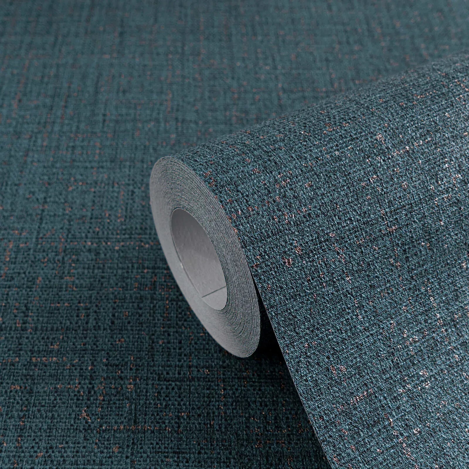 Tapetes raksts ir ar teksturētu virsmu, kas atgādina austos audumus, piemēram, linu vai rupju kanvasu. Smalkas, neregulāras līnijas un pavedieni vijās cauri visam dizainam, piešķirot tam smalku, dabisku tekstūru ar maigu vintage raksturu. Pamata krāsa ir bagātīga, klusa zila, kas nedaudz tendē uz benzīna krāsu un rada mierīgu, patīkamu telpisko efektu. Izkaisīti smalkie akcenti gaišākos un tumšākos zilo toņos, kā arī atsevišķas brūnganas un pelēkas nianses pastiprina materiāla izskatu un rada dziļumu. Stils ir skaidrs, laikmetīgs un neuzbāzīgs, padarot šīs tapetes universālas, piemēram, modernos, skandināvu vai urbānos interjeros. Krāsu gamma rada nomierinošu, mājīgu efektu un izstaro atturīgu eleganci.