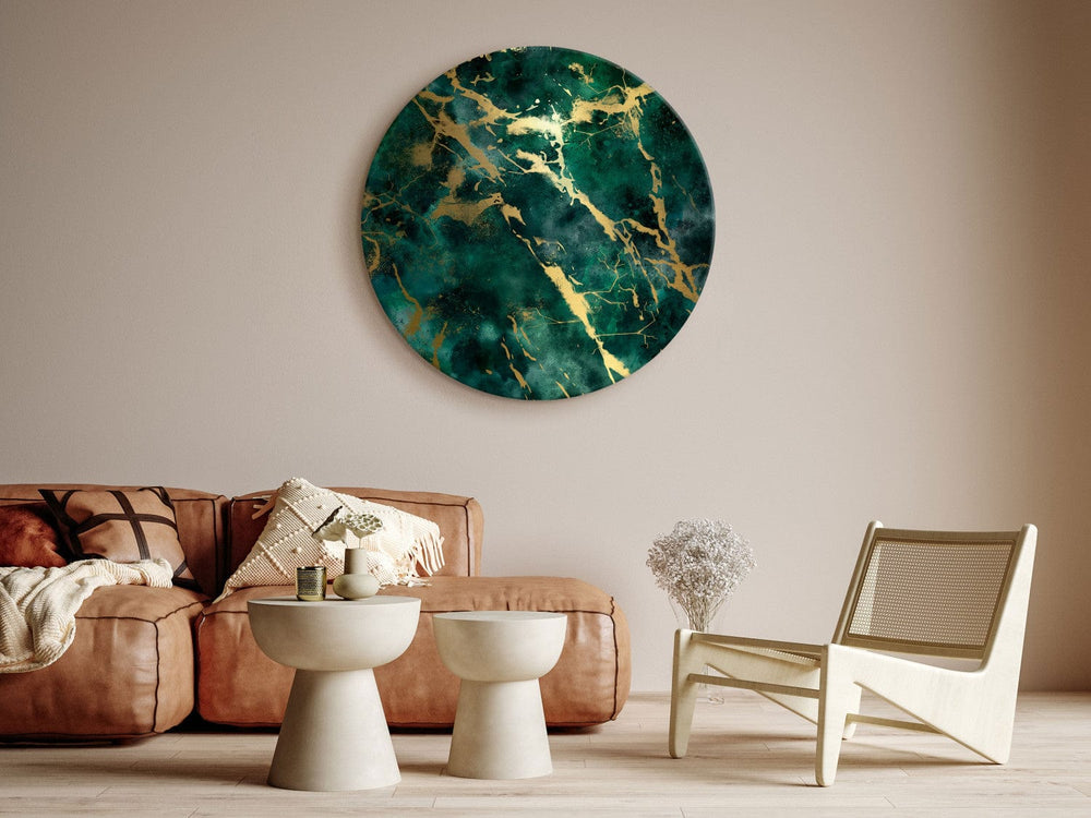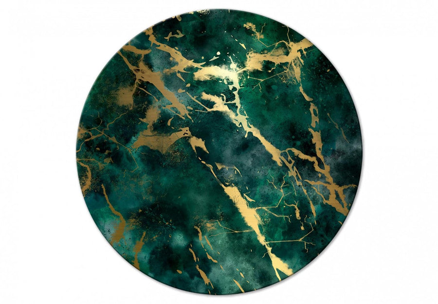 Apaļa glezna - Malahīta marmors, Zelta plaisas uz zaļā akmens, 148696 G-ART