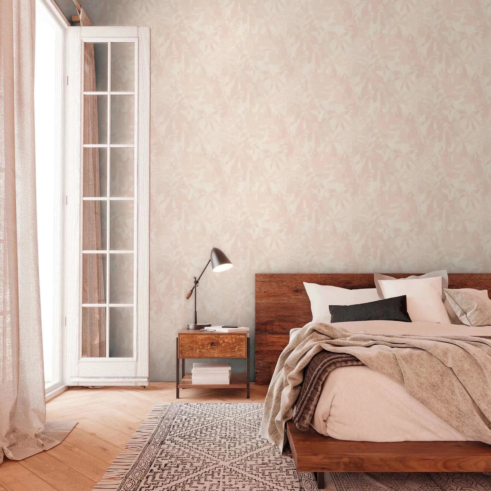 Daniel Hechterin tyylikkäät vaaleanpunaiset tapetit, joissa on herkkiä lehtikuvioita, luovat romanttisen ja naisellisen tunnelman.