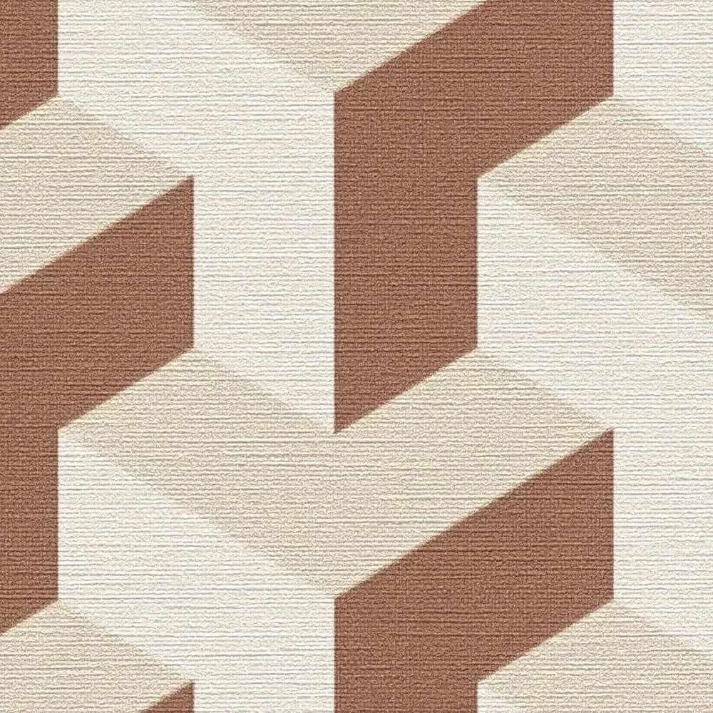 Daniel Hechterin ruskeat ja kermanväriset retro-3D-tapetit luovat tyylikkäitä kontrasteja ja tilallista syvyyttä.