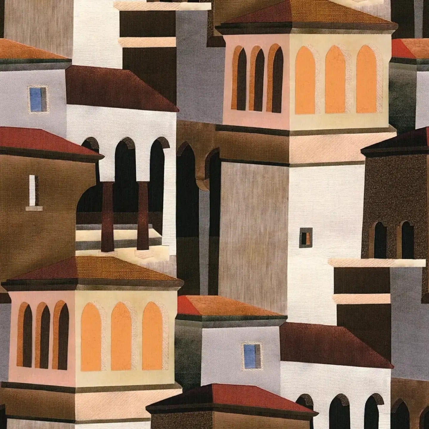 Tapetti tyylitellyllä kaupunkimotiivilla, hienostunut design ja mattapinta | ruskea - 3012477