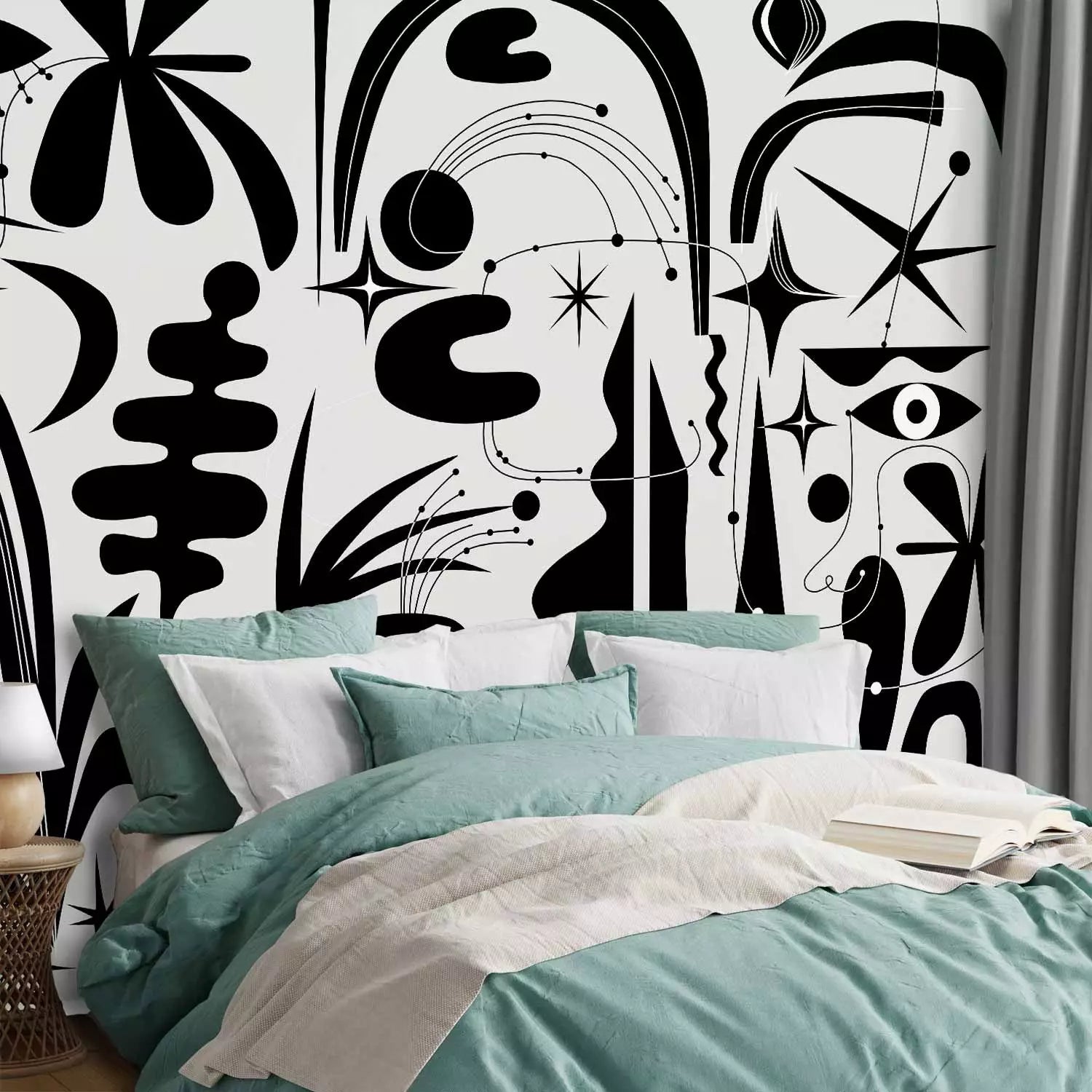 Valokuvatapetti Abstrakti sommitelma – mustat, geometriset ja kukkaiset kuviot, 149885