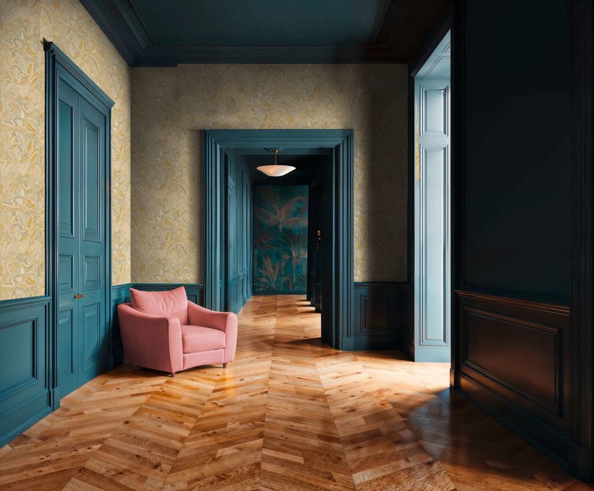 Romanttinen ja luonnollinen tapetti, jossa on mattapintainen, kuvioitu pinta. Ne on helppo pitää puhtaana korkealaatuisen pintakäsittelyn ansiosta. Liimaamisessa on noudatettava 64 cm:n kuviotoistoa, jotta kukat liittyvät tarkasti toisiinsa. Vihreät kasvi- ja lehtikoristeet luovat harmonisen ja rentouttavan ympäristön. Toisin kuin suuret palmut, tämä kuvio on hienompi ja yksityiskohtaisempi, muistuttaen kasvitieteellisiä piirroksia. Erinomainen valinta, kun haluat tuoda luontoa kaupunkiasuntoosi.
