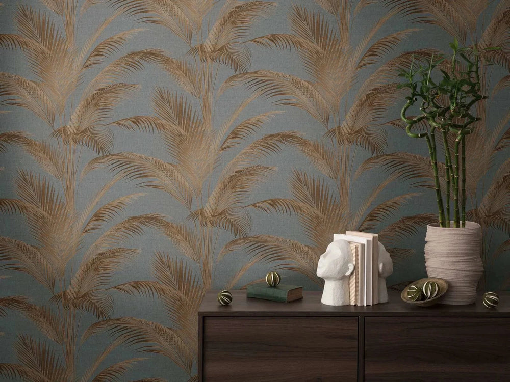 Kuitutapetit palmunlehdillä kuparin ja harmaan sävyissä - 1414673