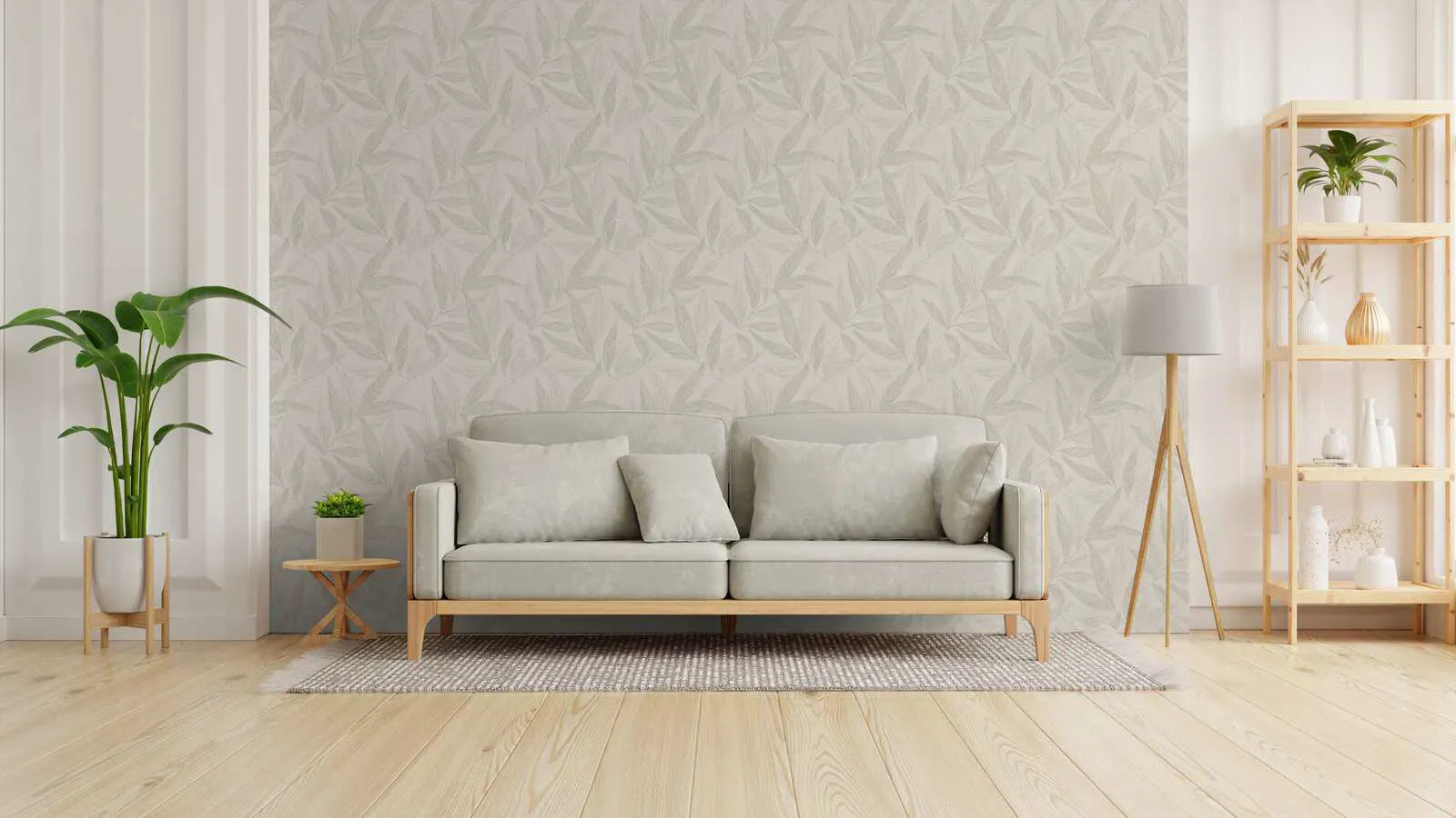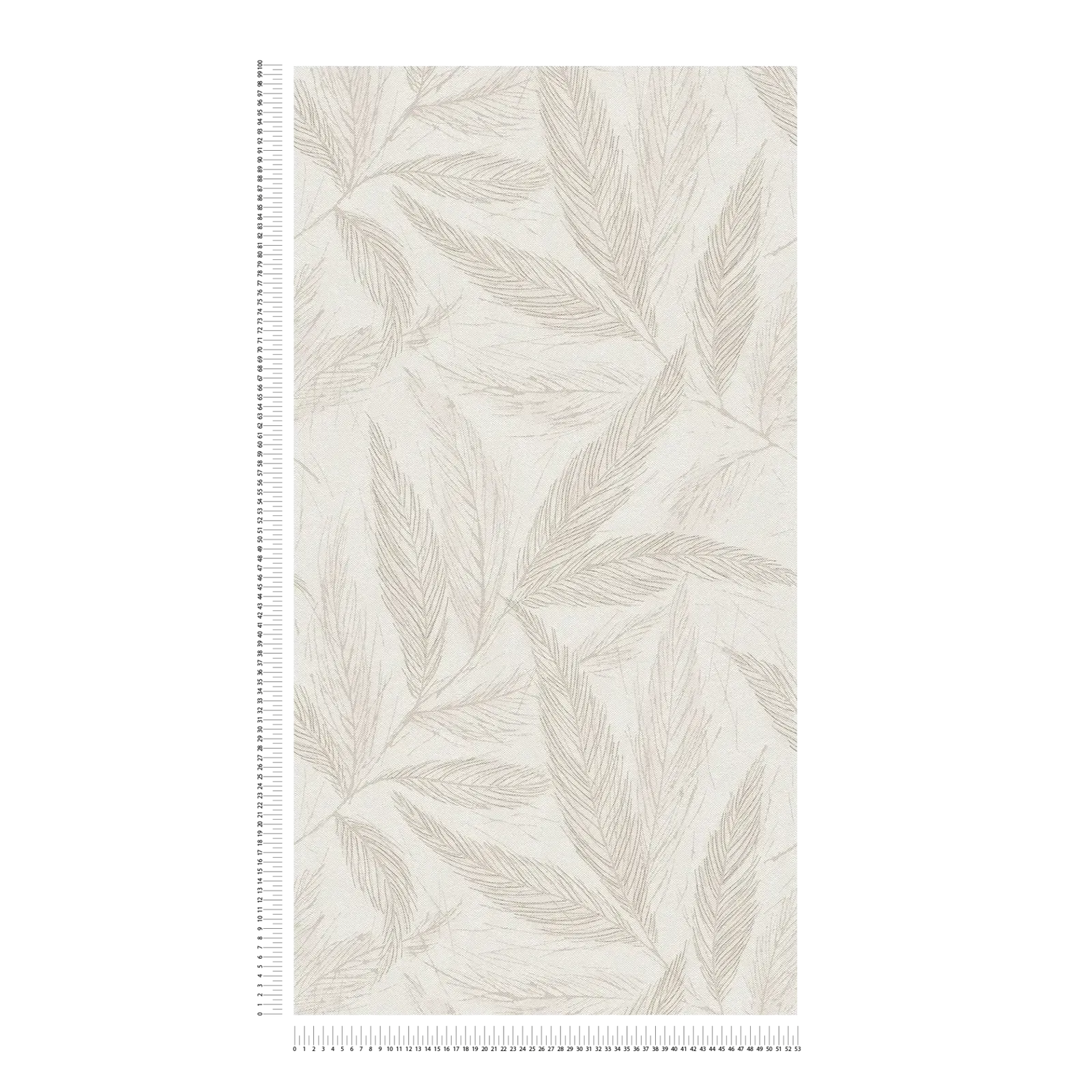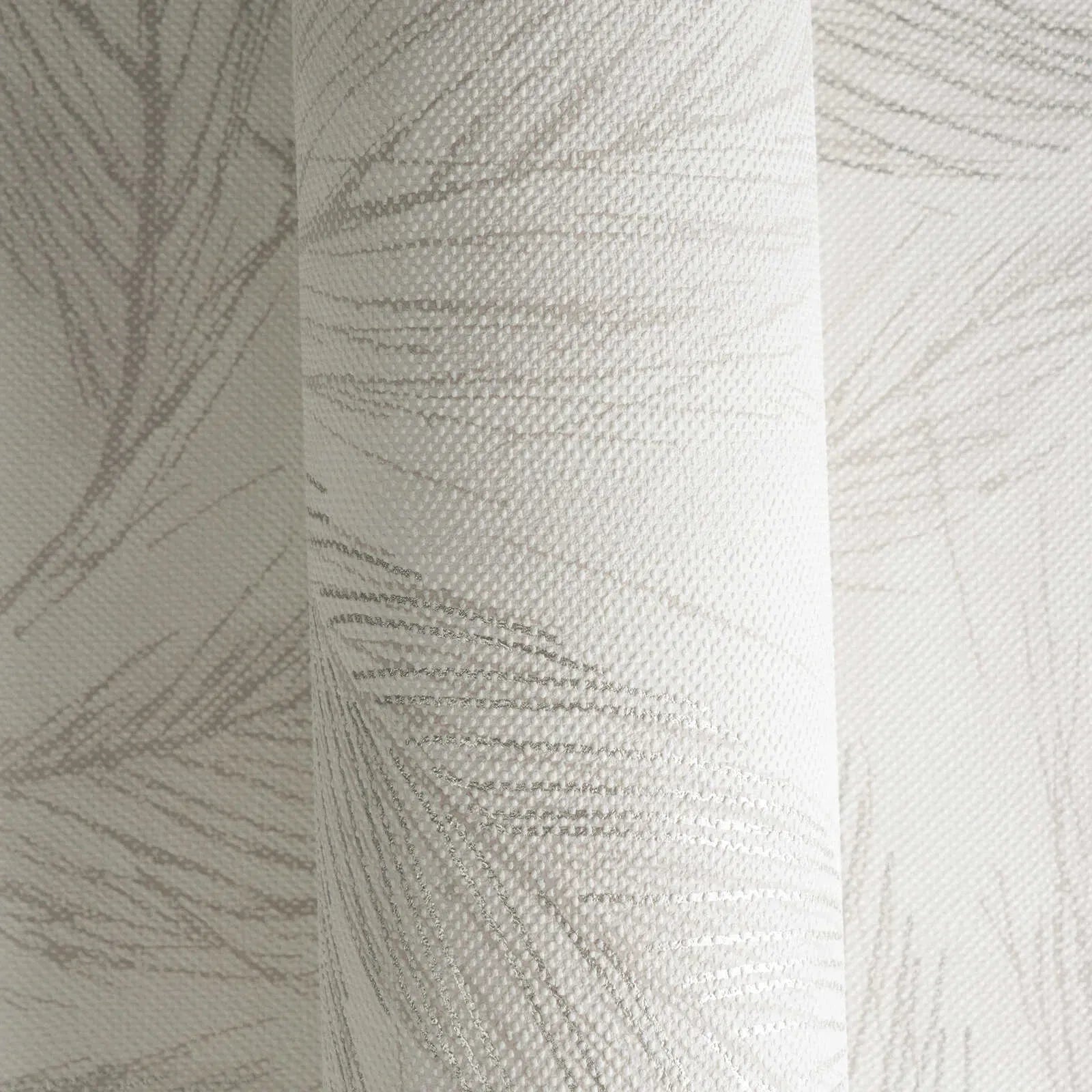 Filigraaniset, virtaavat lehdet pehmeissä hiekka- ja harmaasävyissä ulottuvat diagonaalisesti lämpimän valkoisella taustalla. Hienot viivat näyttävät melkein luonnoksilta ja antavat motiiville elegantin, huomaamattoman keveyden. Sävy sävyyn -värimaailma luo hienovaraisen, luonnollisen tunnelman, joka säteilee rauhaa ja harmoniaa. Tyyli perustuu moderneihin luontomotiiveihin, joilla on minimalistinen, nykyaikainen ilme, ja siinä on selvä tekstiilinen tekstuuri, joka tuo lisää lämpöä ja kodikkuutta.