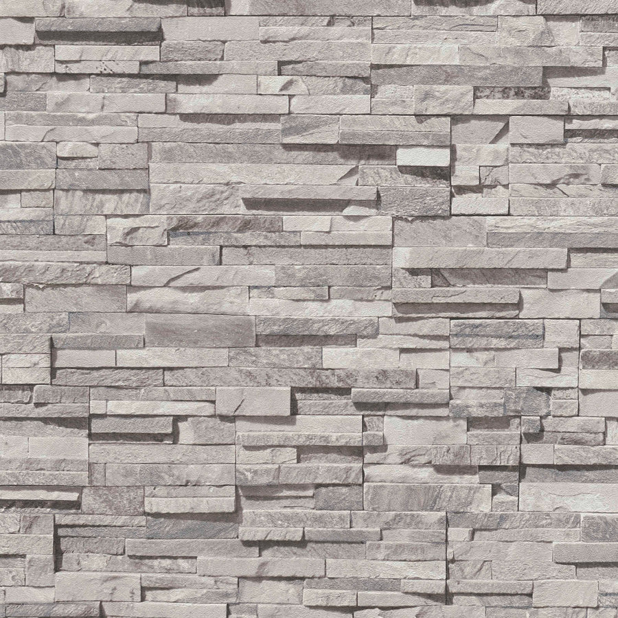Nedaudz spīdīgas tapetes ar akmens sienas izskatu - pelēkas - 1366102 AS Creation