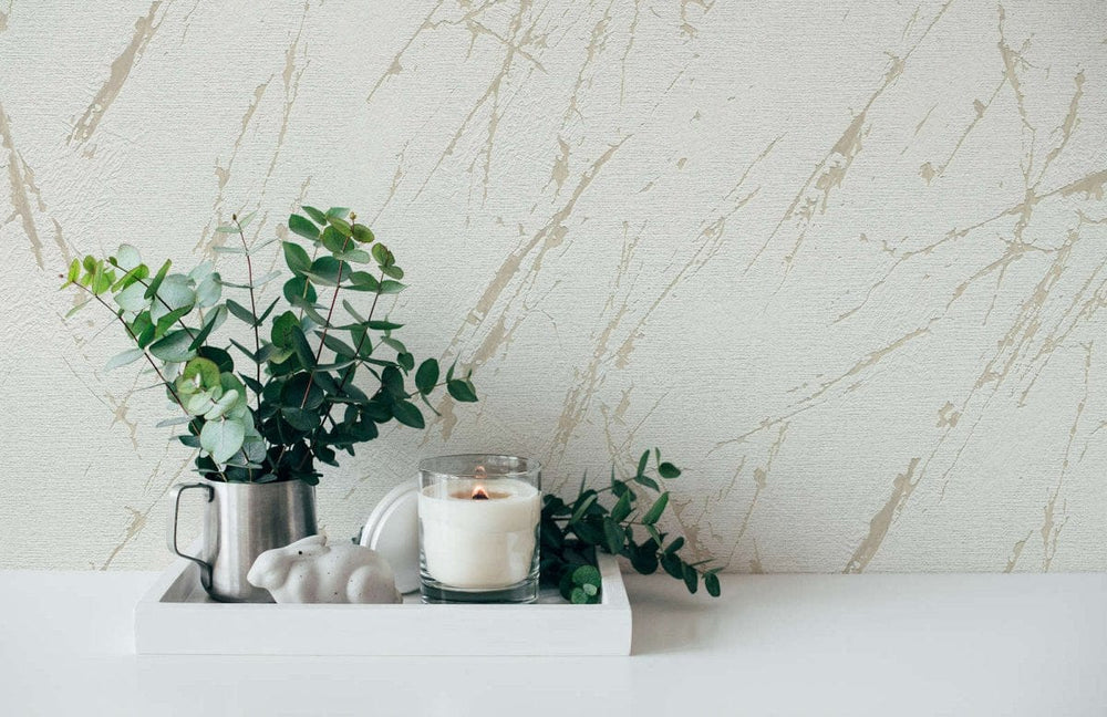 Modernas tapetes ar lielu marmora rakstu zeltā krāsā - 1034502 Erismann