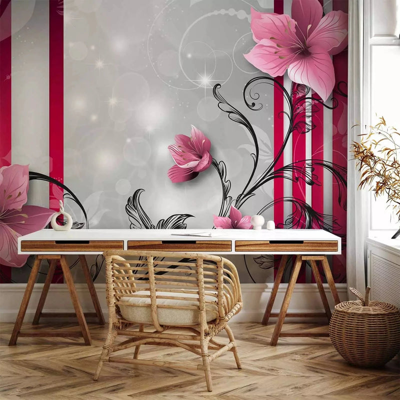 Valokuvatapetti pehmeän vaaleanpunaisen sävyiset kukat, 60784