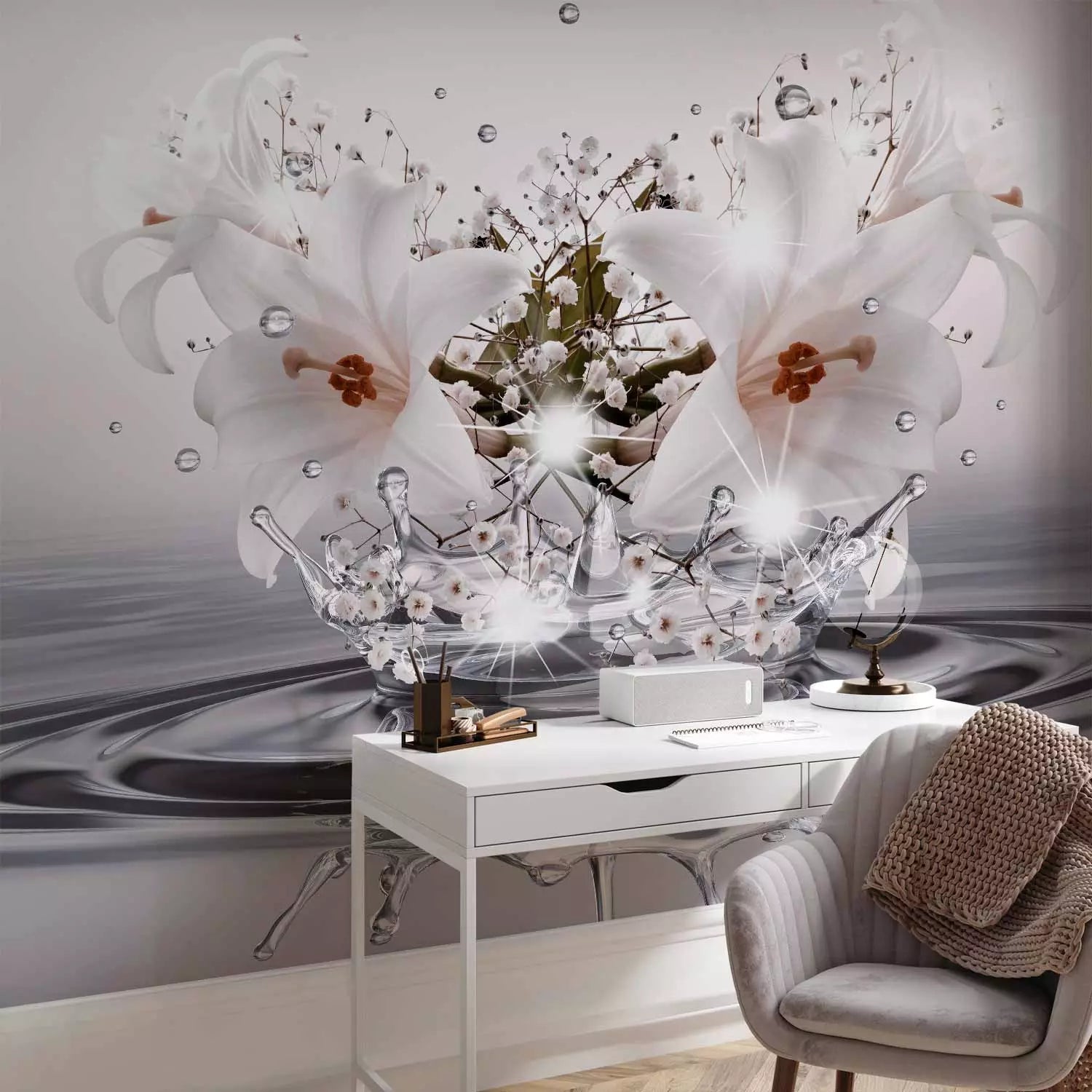 Valokuvatapetti – valkoisia liljoja vedessä, 135800