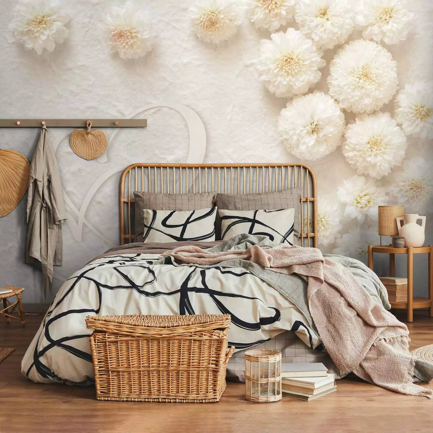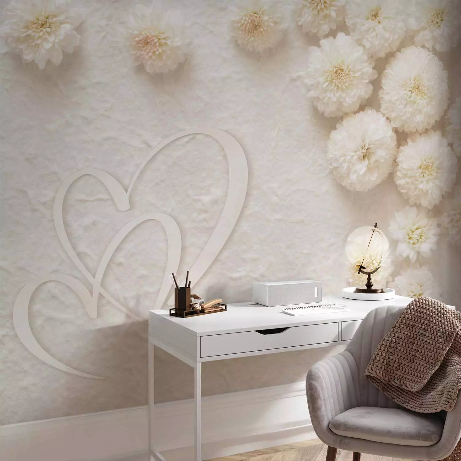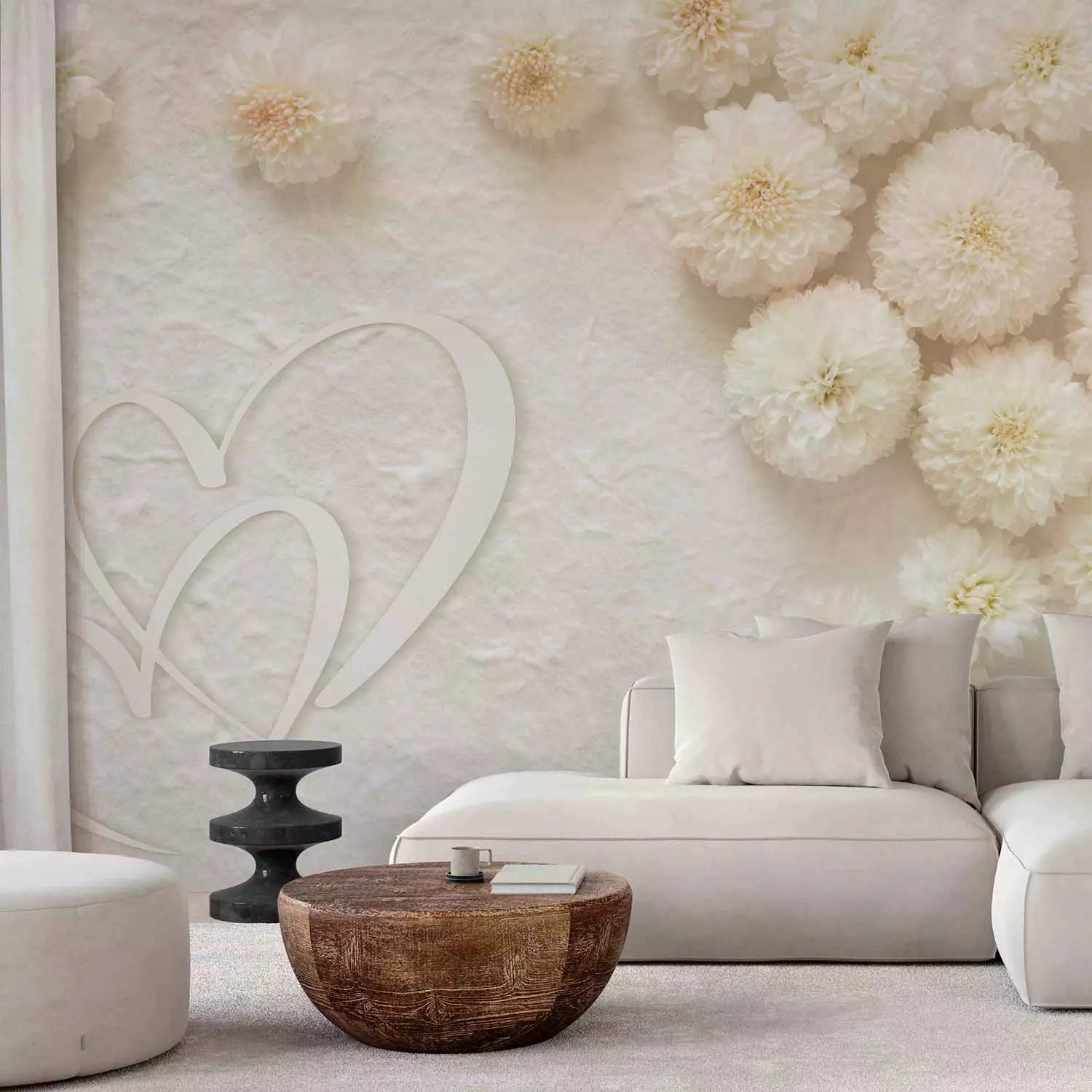 Valokuvatapetti - Kukkien ja kahden sydämen sommitelma, 138738