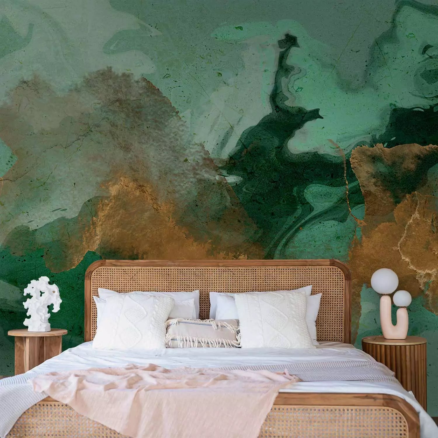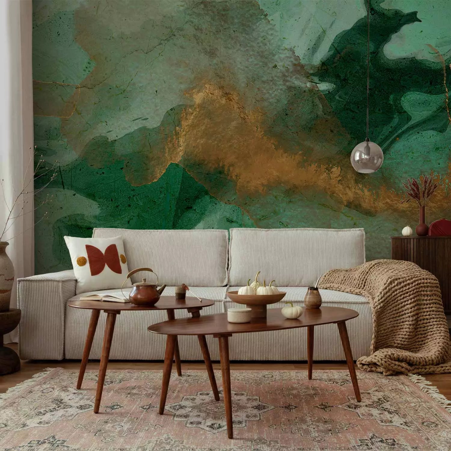 Valokuvatapetti - Abstraktio tummanvihreällä ja pronssilla, 135489