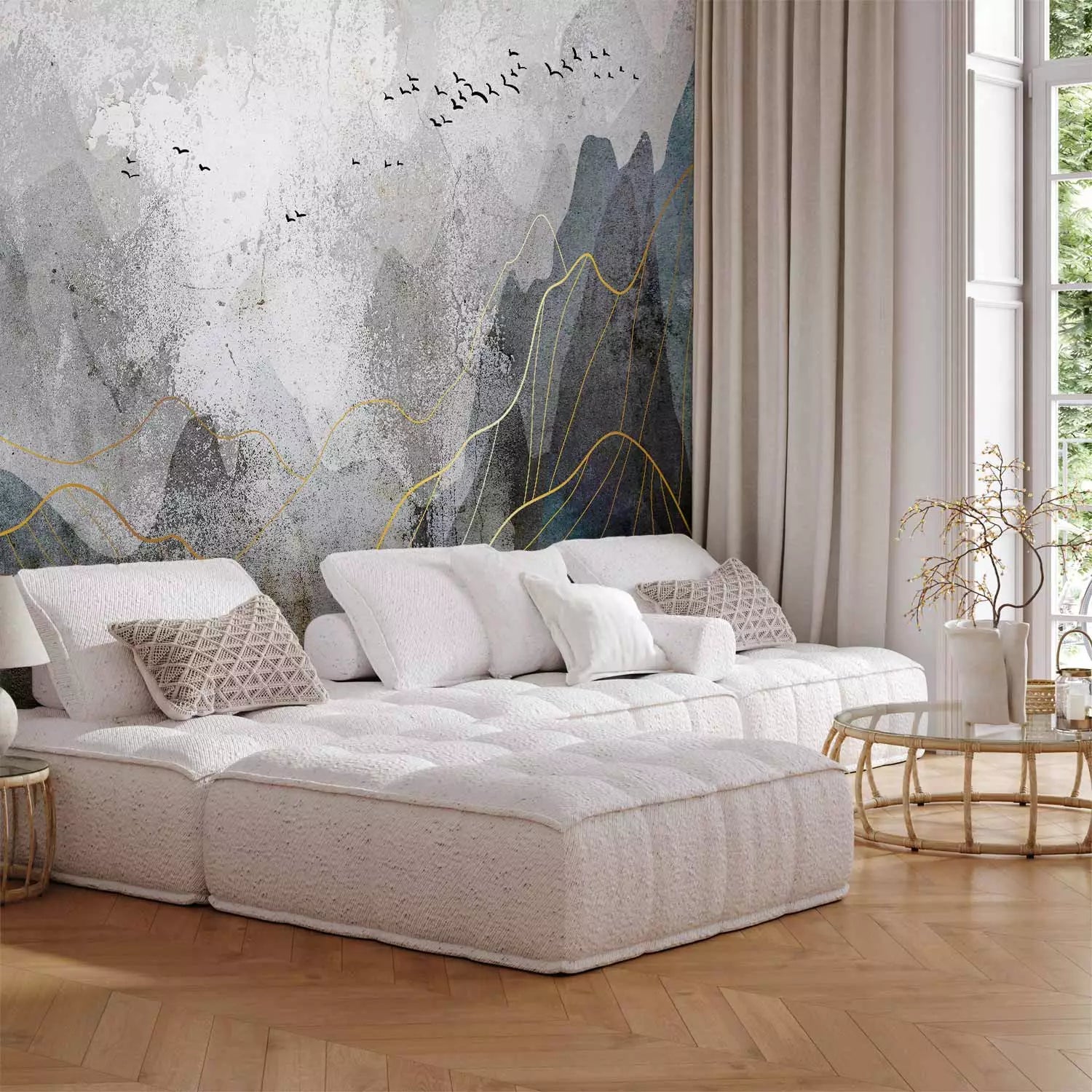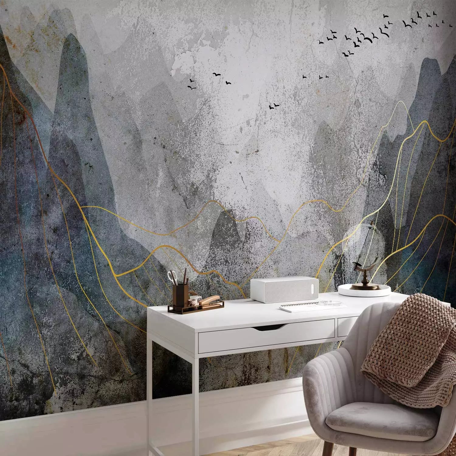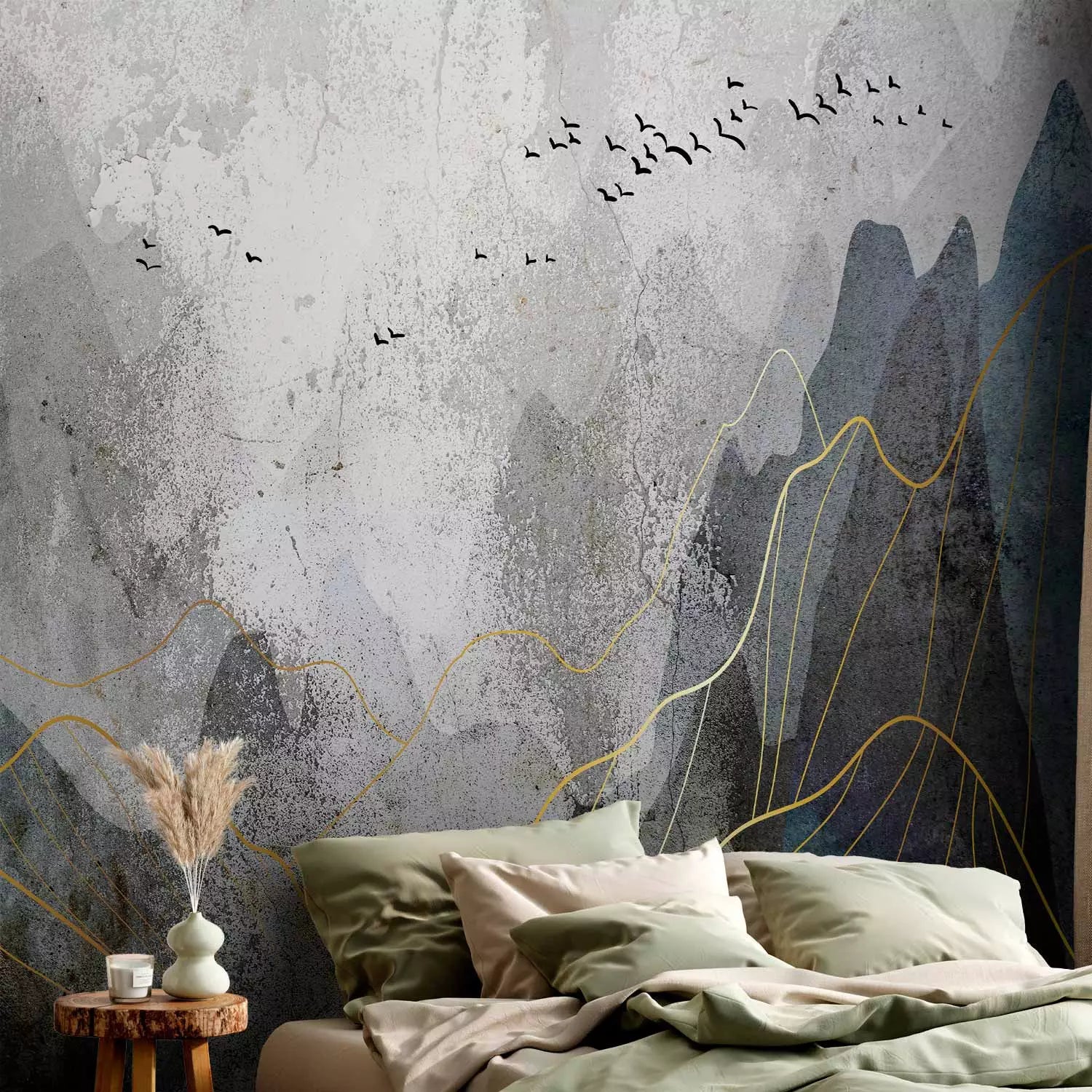 Valokuvatapetti tyyliteltyjä vuoria harmaan sävyissä, 136324