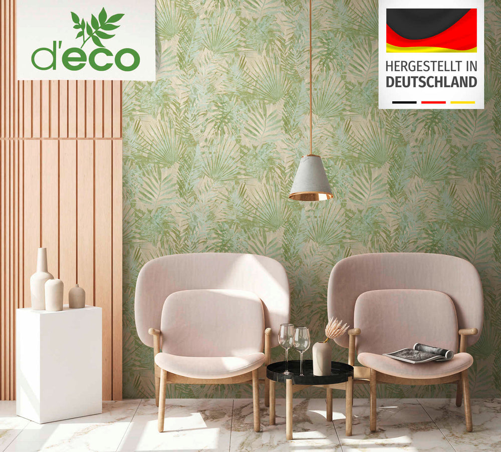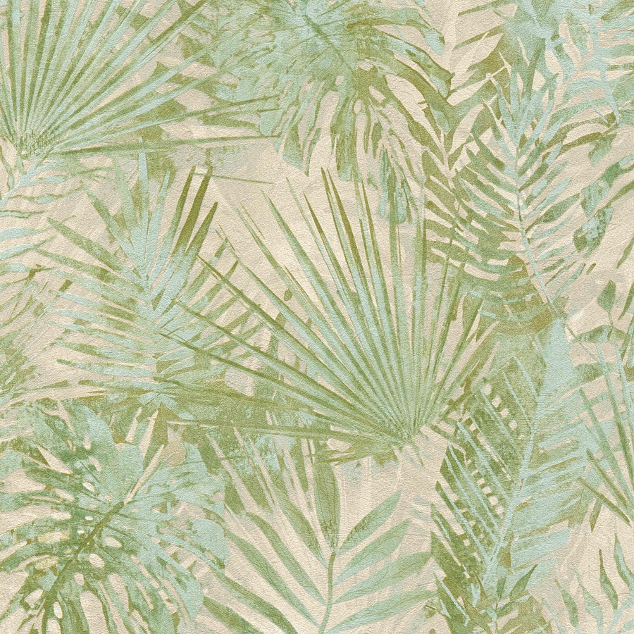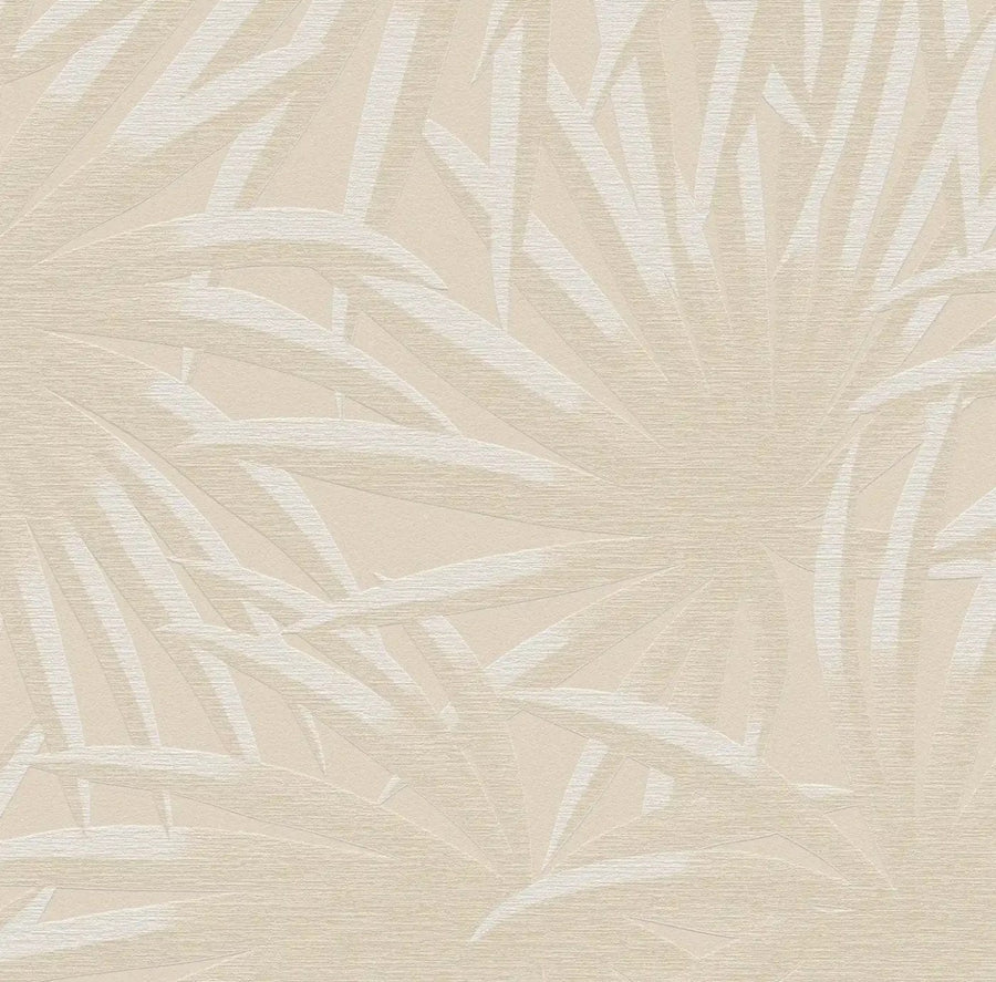 Tapetes ar palmu lapu rakstu siltos toņos – bēšā krāsā - 393382 AS Creation