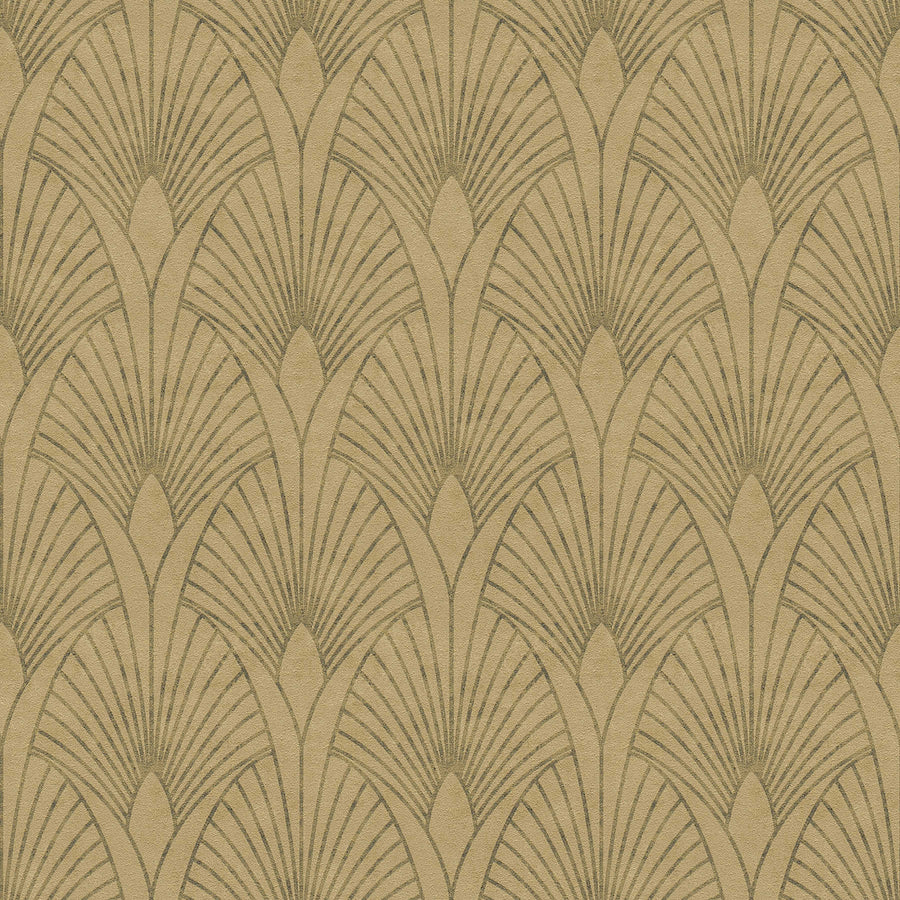 Tapetes Art Deco stilā melnā un zeltā krāsā ar spīduma efektu, 1366271 AS Creation