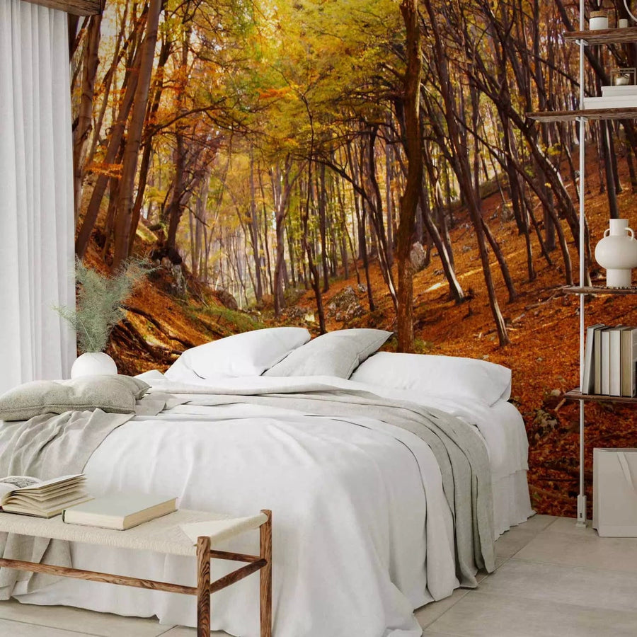 Fototapetes - MeĆŸs rudens krāsās - rudend ainava ar nokrituƥām lapām G-ART