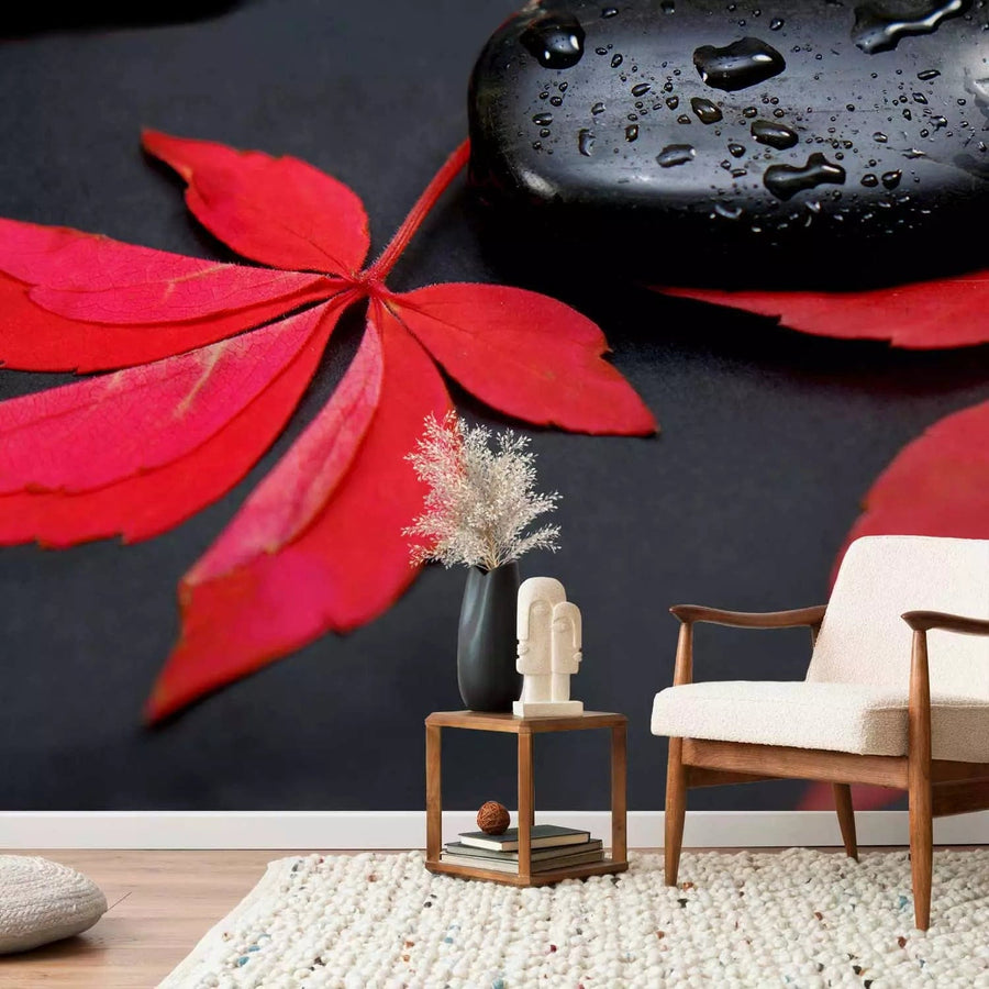 Fototapetes ar melniem akmeƆiem un sarkanam lapām, 59841 G-ART