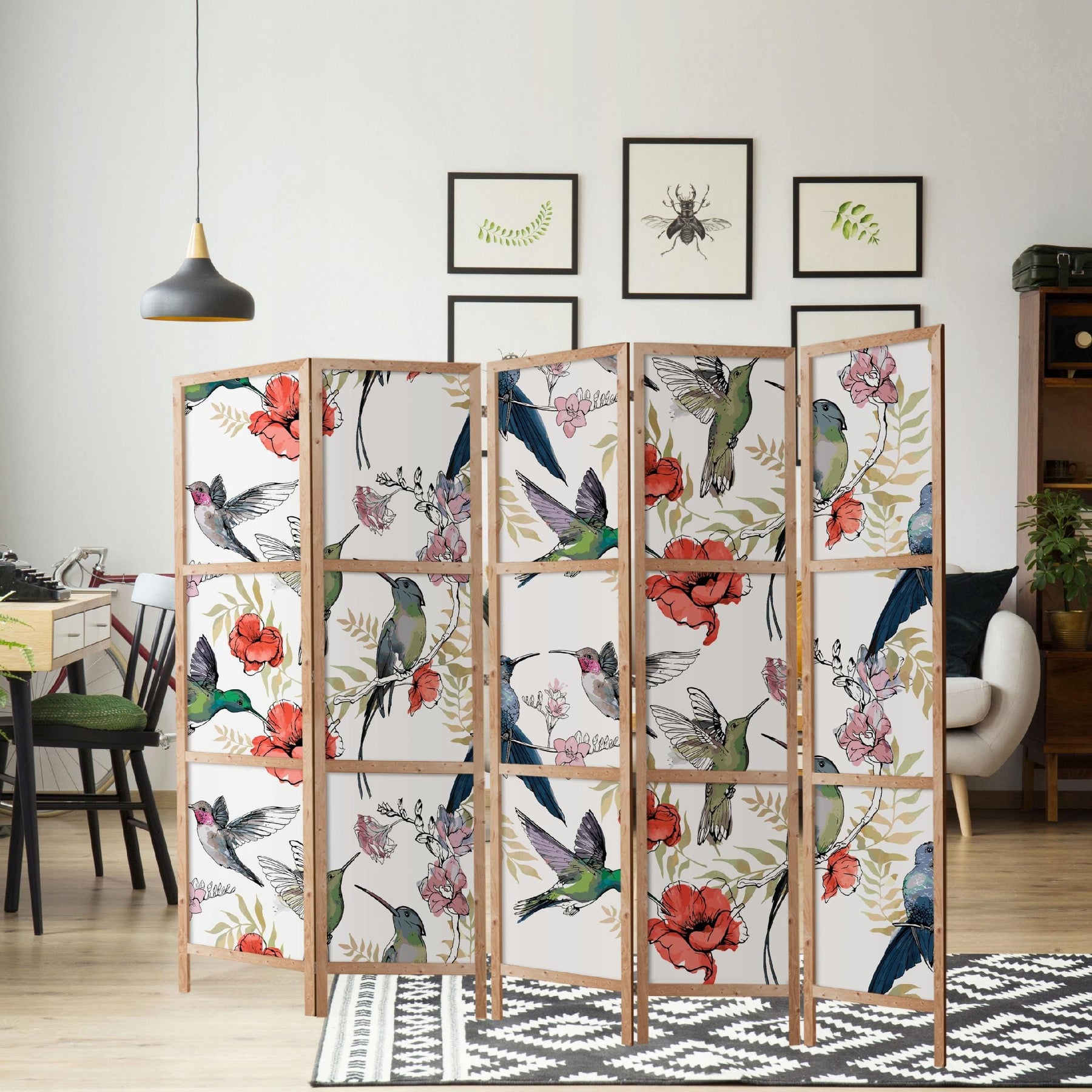 Koristeellinen japanilainen tilanjakaja, yksipuolinen 225x172, Kolibri ja magonit