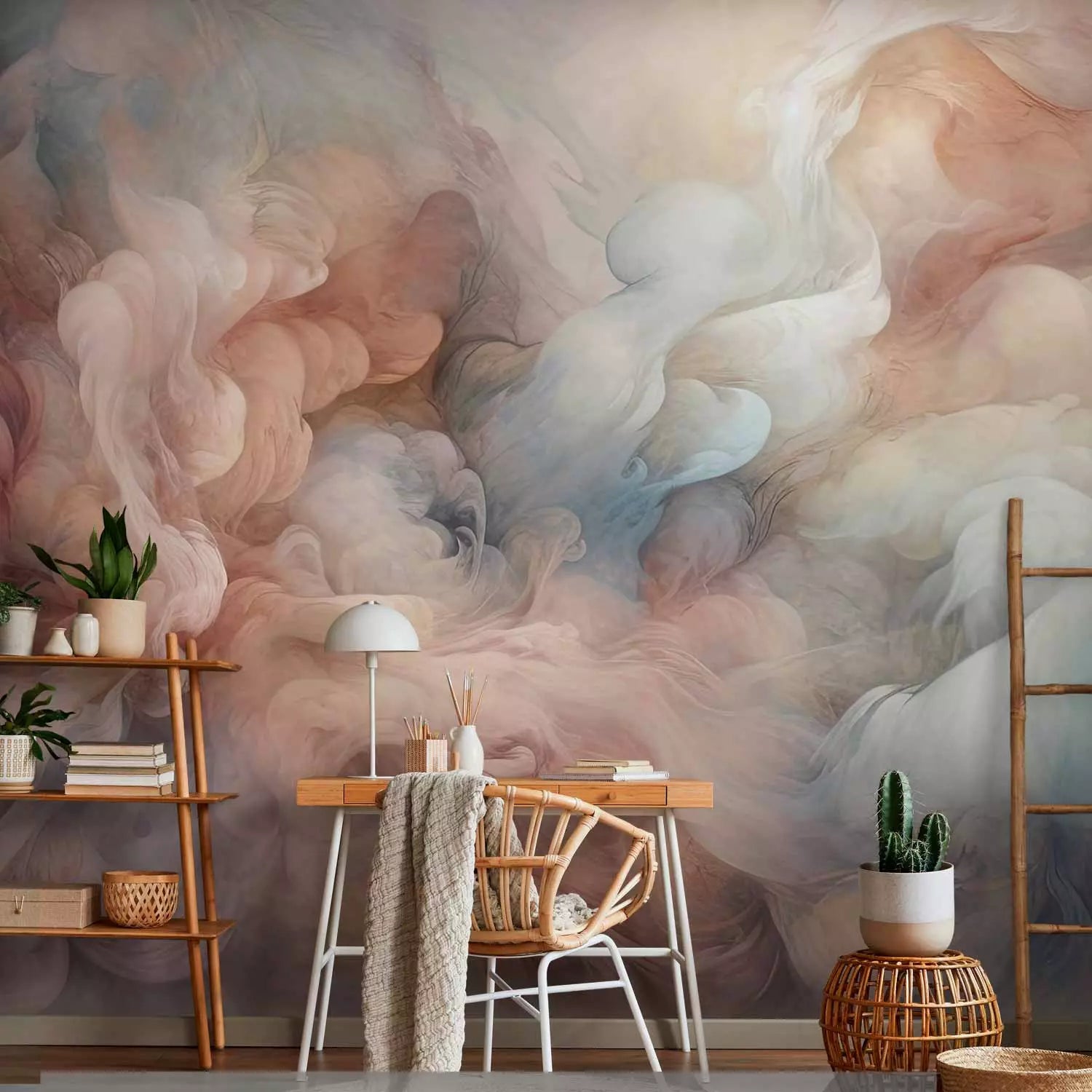Valokuvatapetti - Pörröinen pilvi vaaleanpunaisella ja sinisellä, 150662