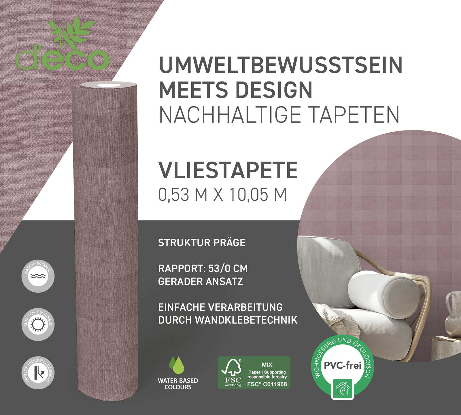 Ekologiški tapetai su languoto rašto ir lino išvaizda, be PVC: violetinės spalvos, 1363124