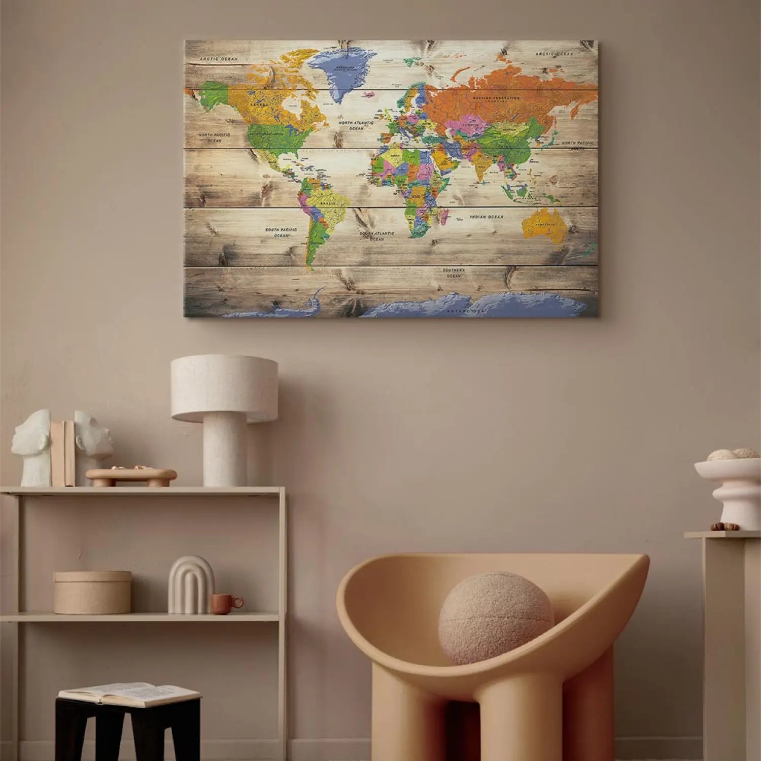 Paveikslai ant drobės - Žemėlapis ant medžio: Spalvotos kelionės, 97517 (x1)
