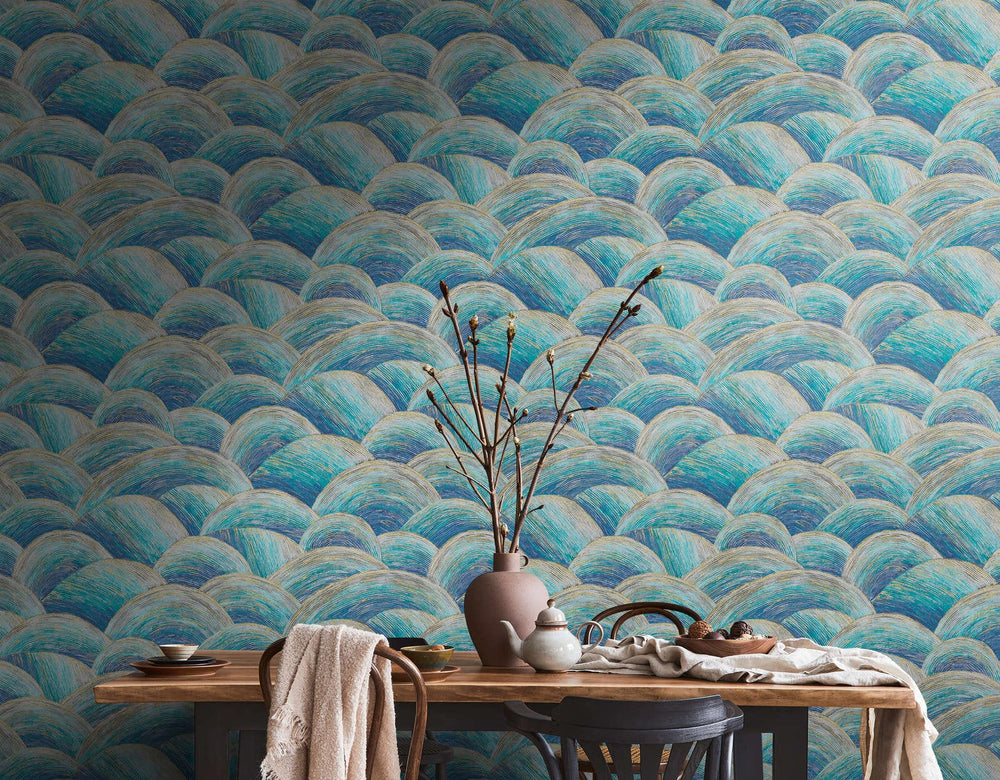 Abstraktūs tapetai su bangų raštu ir blizgesio efektu, mėlyni, 1373613
