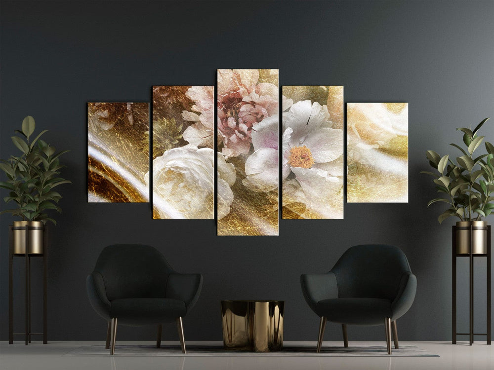 Paveikslai: aukso spalvos paveikslai sukurs įspūdingą vaizdą ir taps pagrindiniu prabangių svetainių ar prieškambarių akcentu. Idealiai tinka kambariams, kuriuose norite sukurti prabangos ir puošnumo įspūdį.