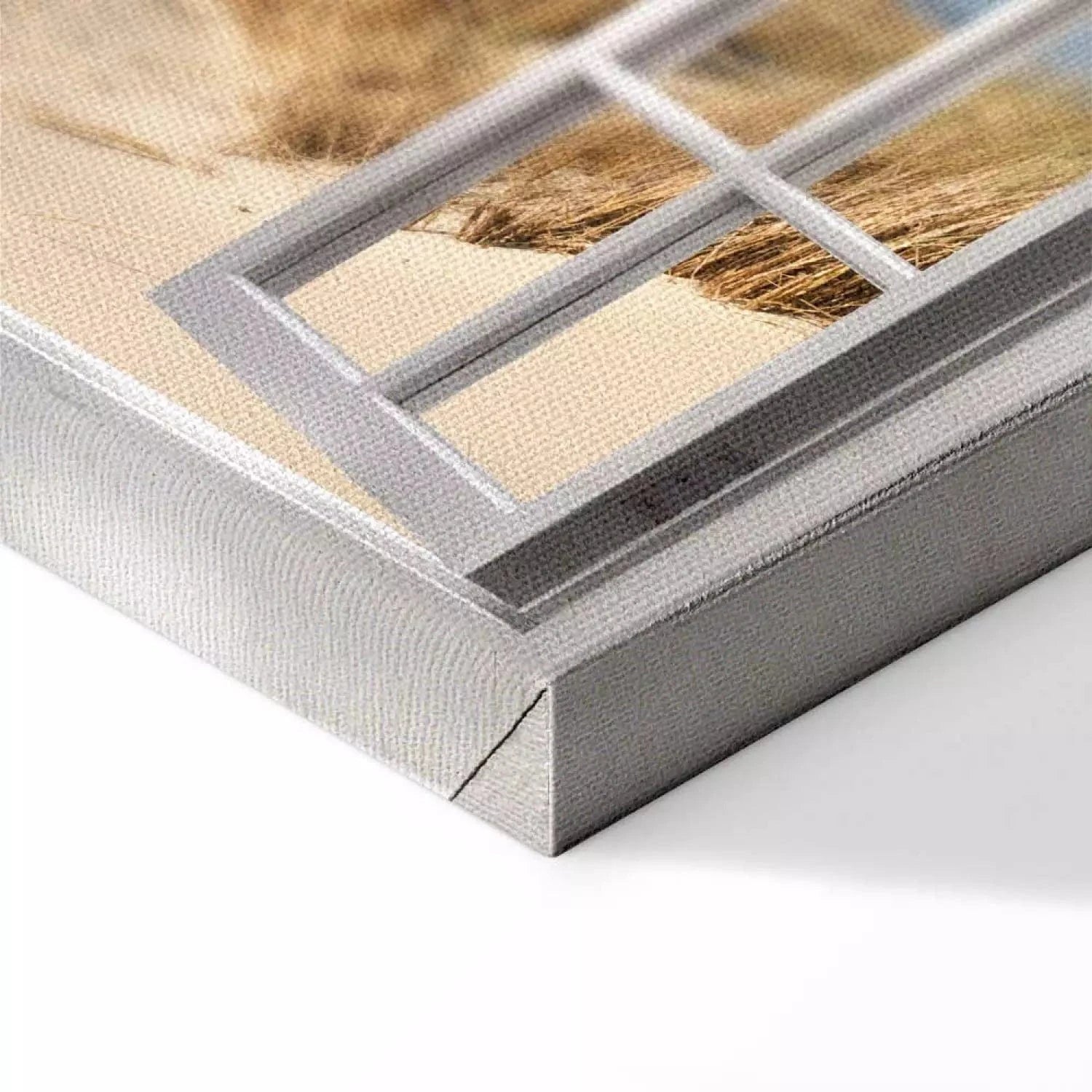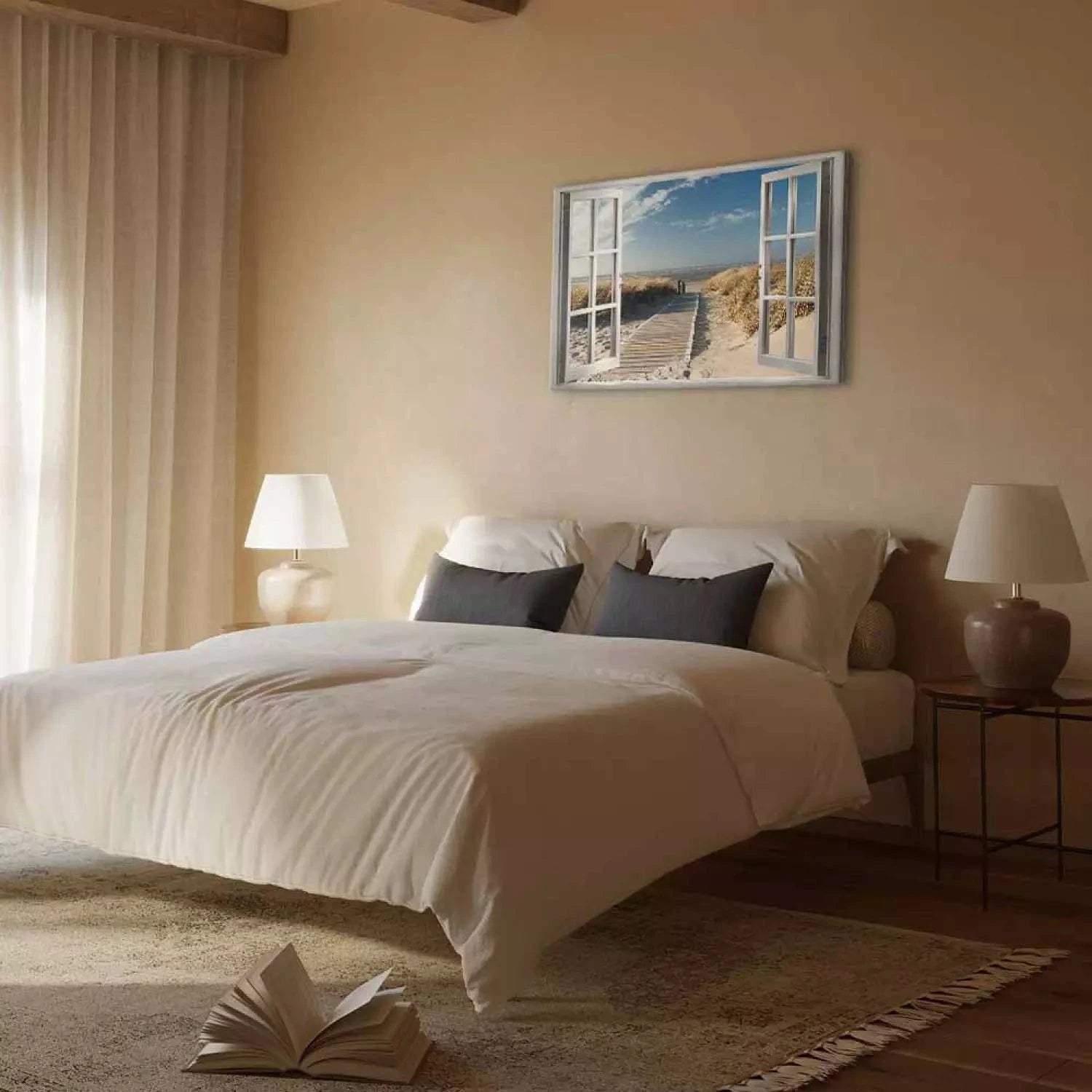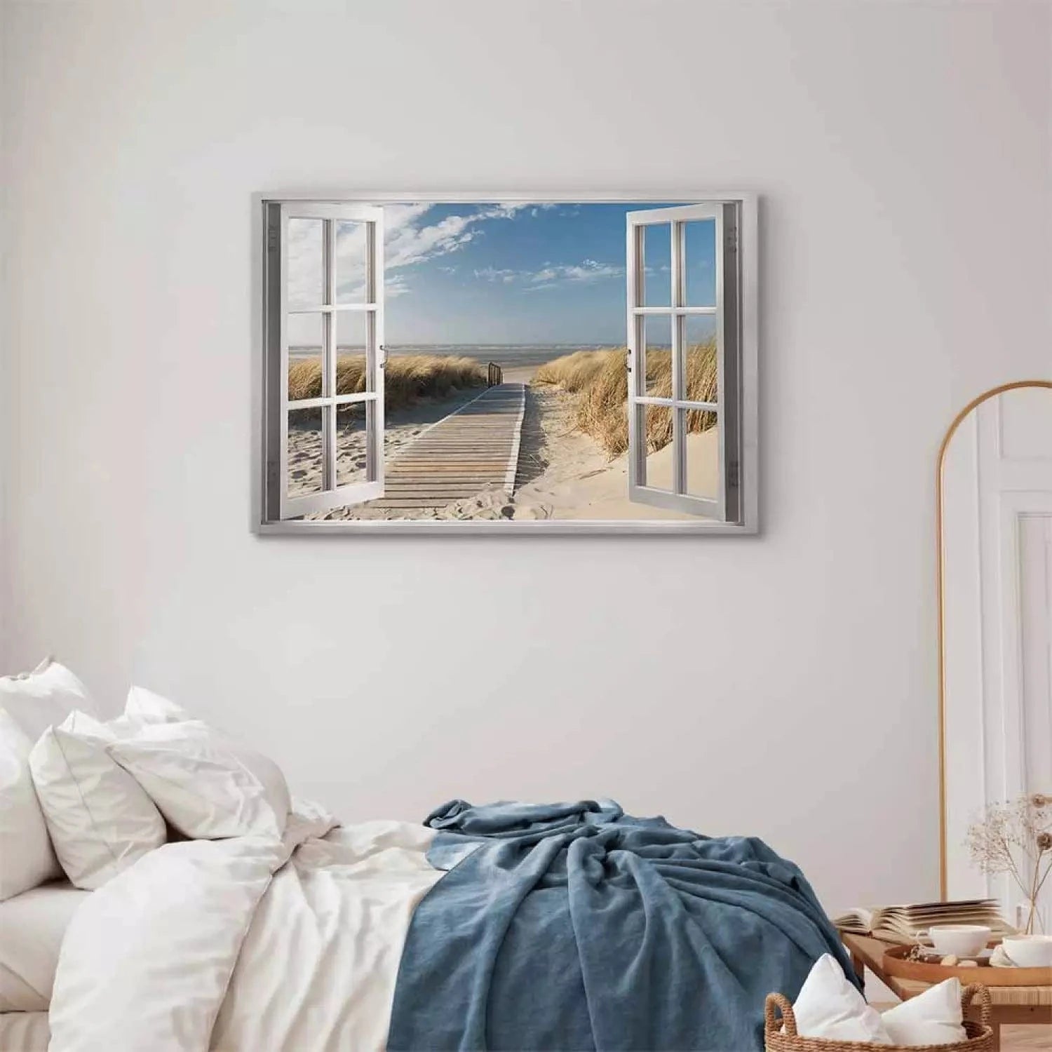 Paveikslai ant drobės Langas: vaizdas į paplūdimį