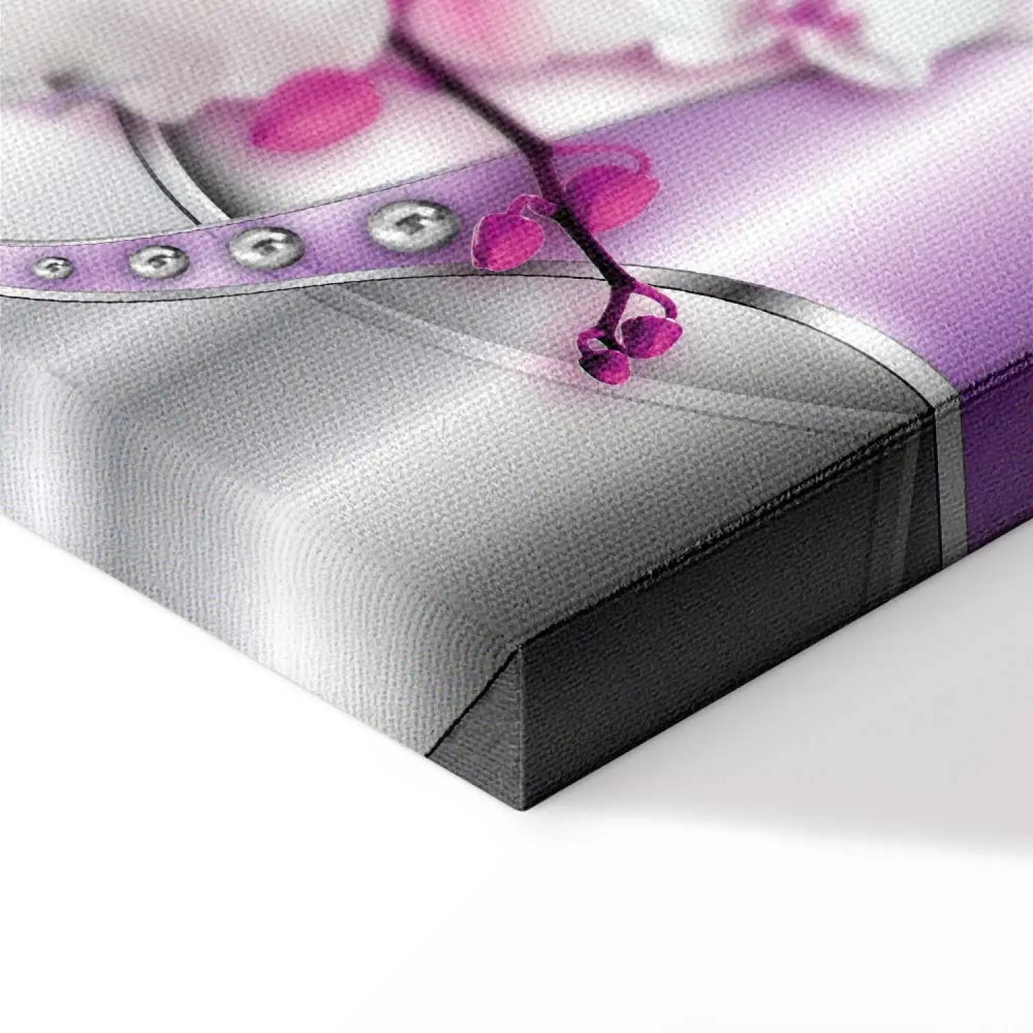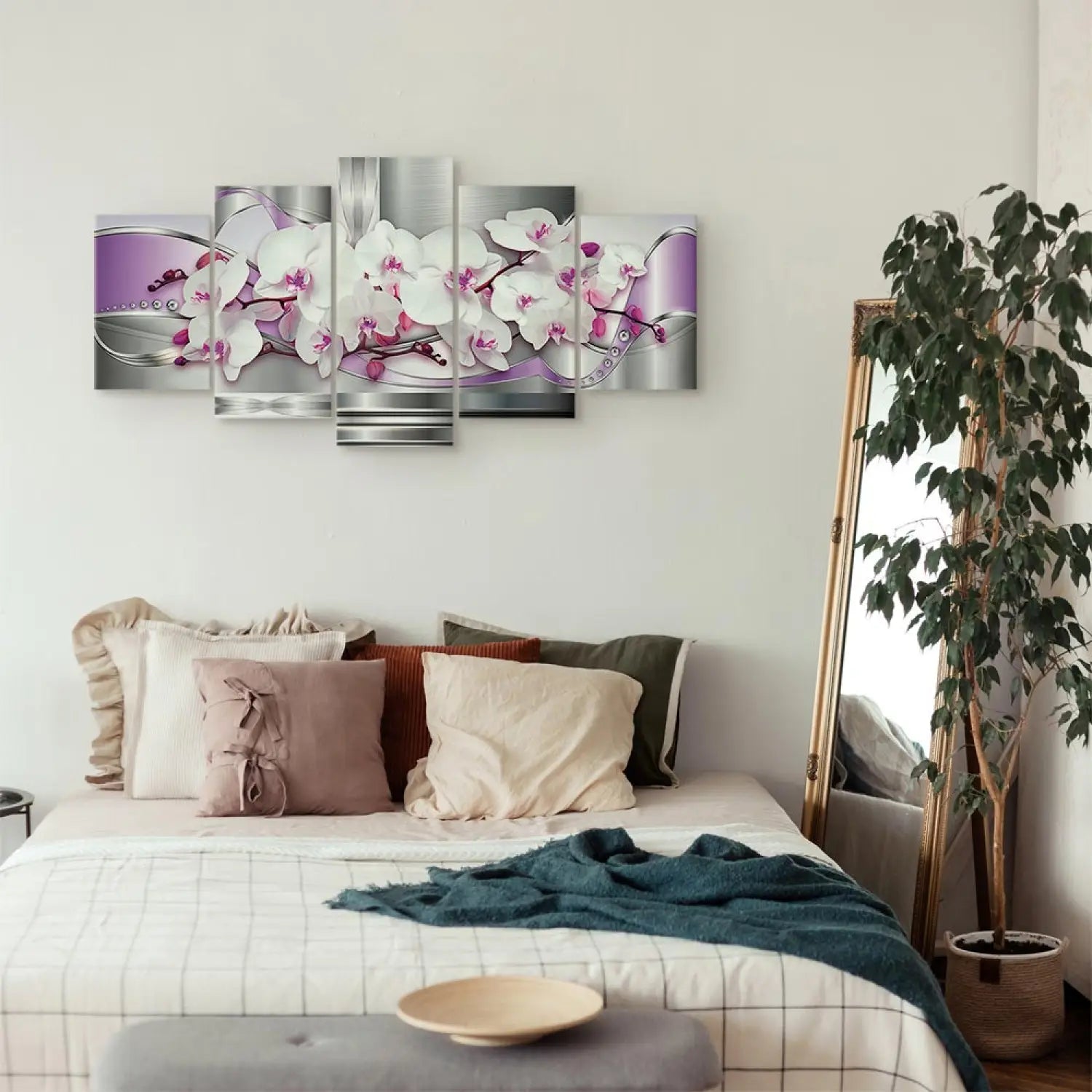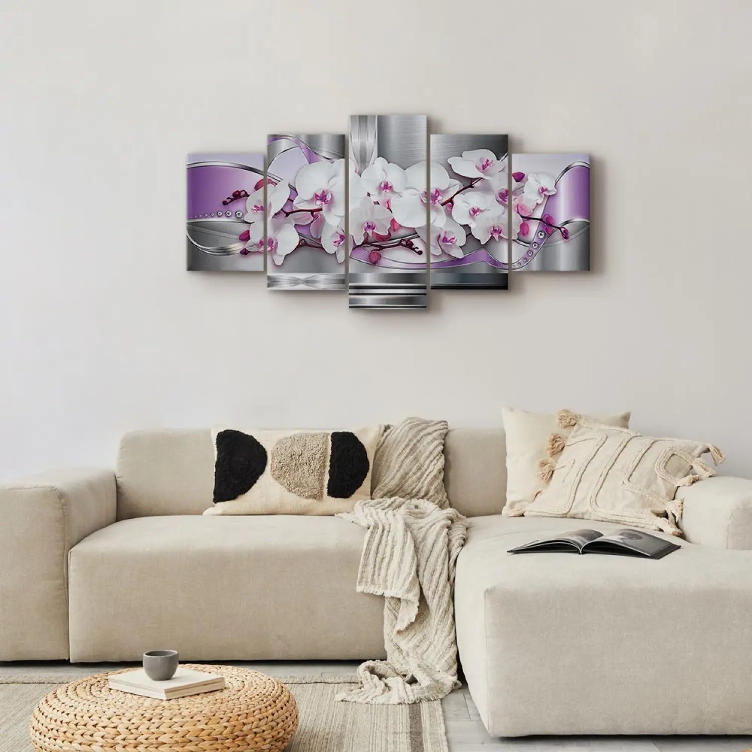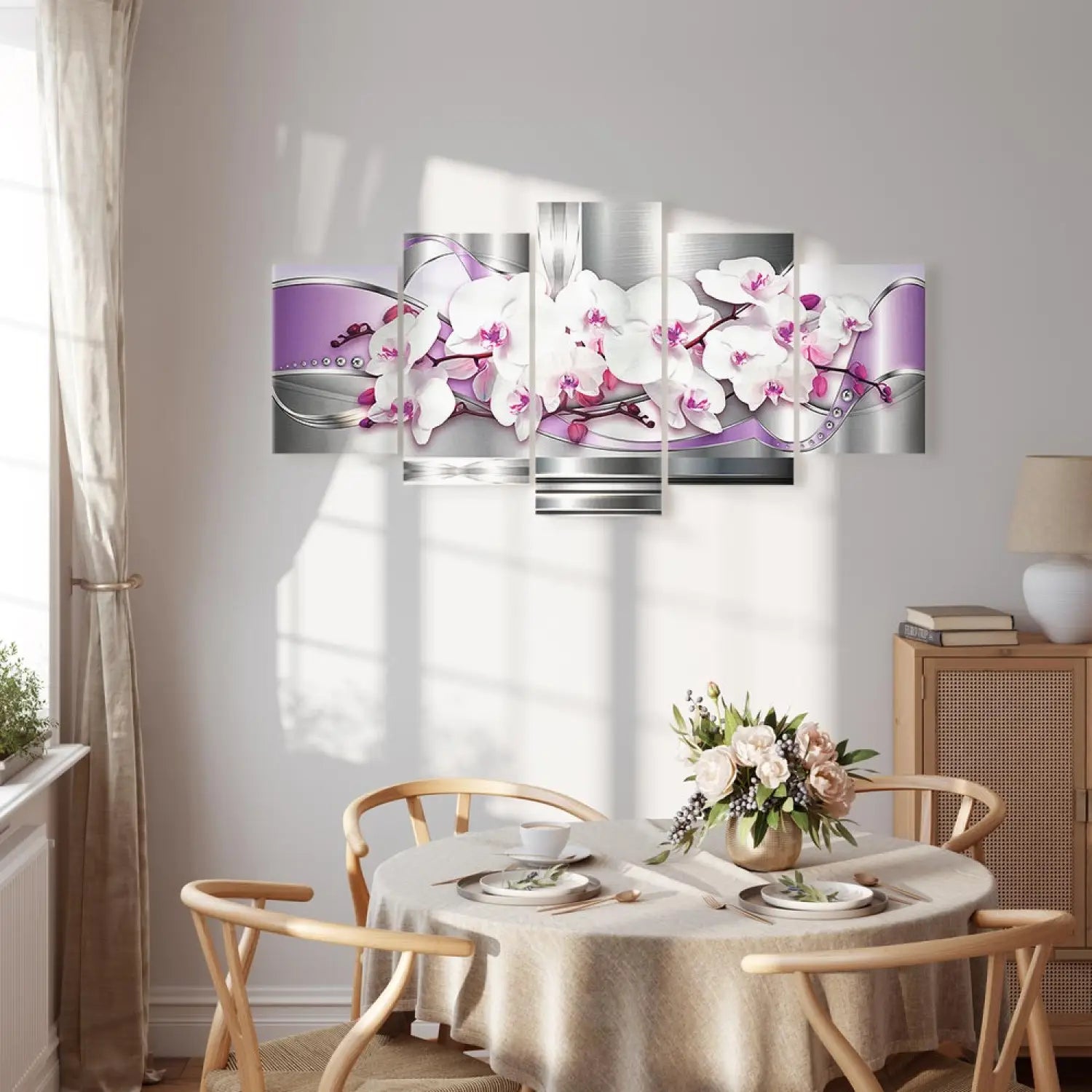 Paveikslai ant drobės - Baltos orchidėjos pilkame ir violetiniame fone, (x5), 51243
