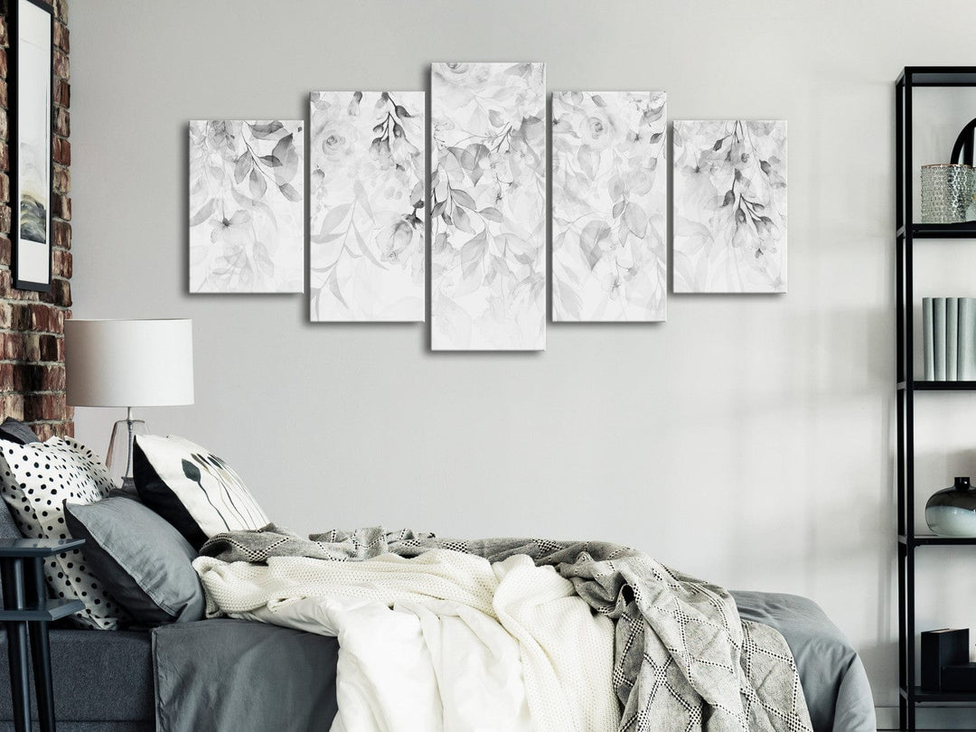 Paveikslai ant drobės su juodais lapais ant baltos spalvos - Rožių krioklys, (x 5), 150082