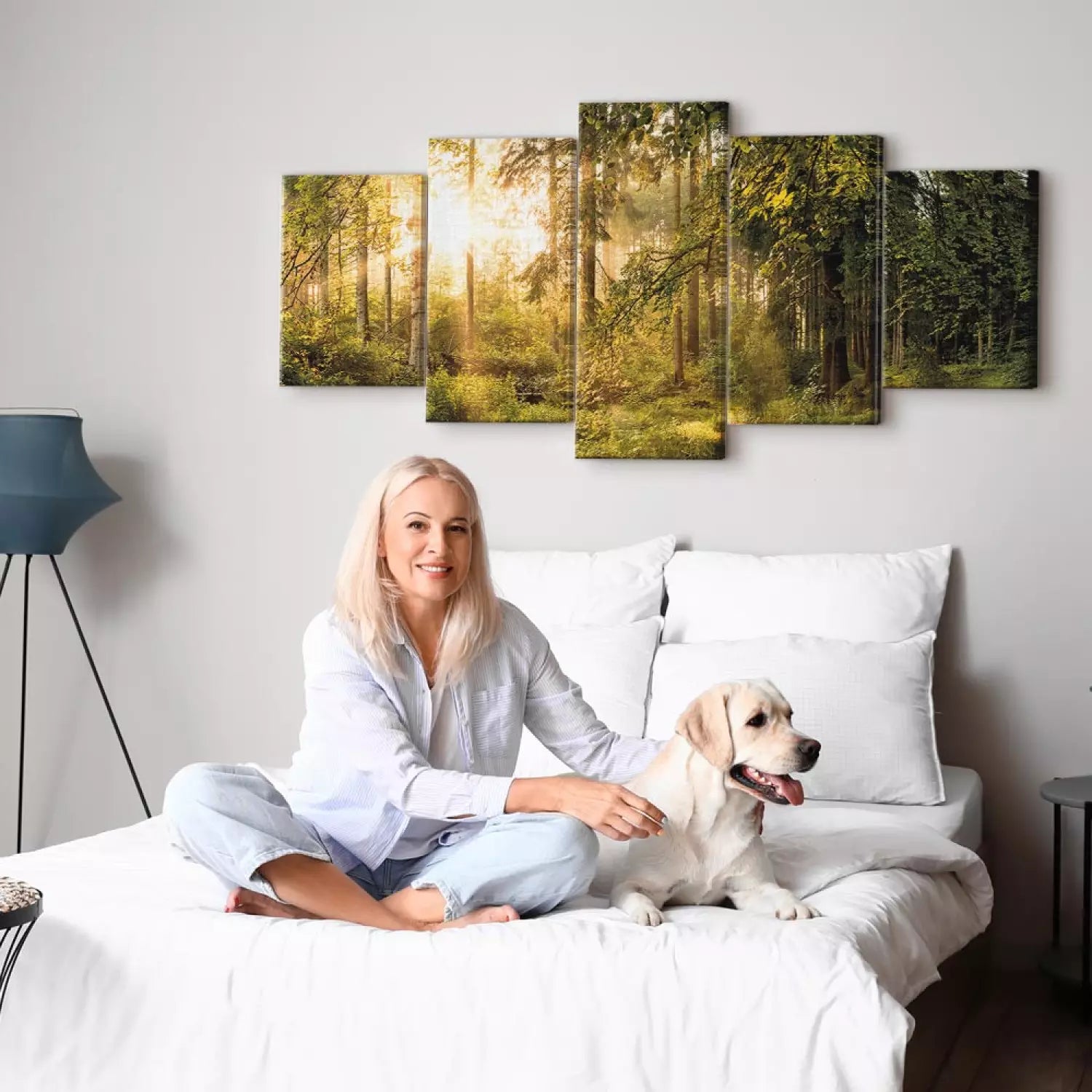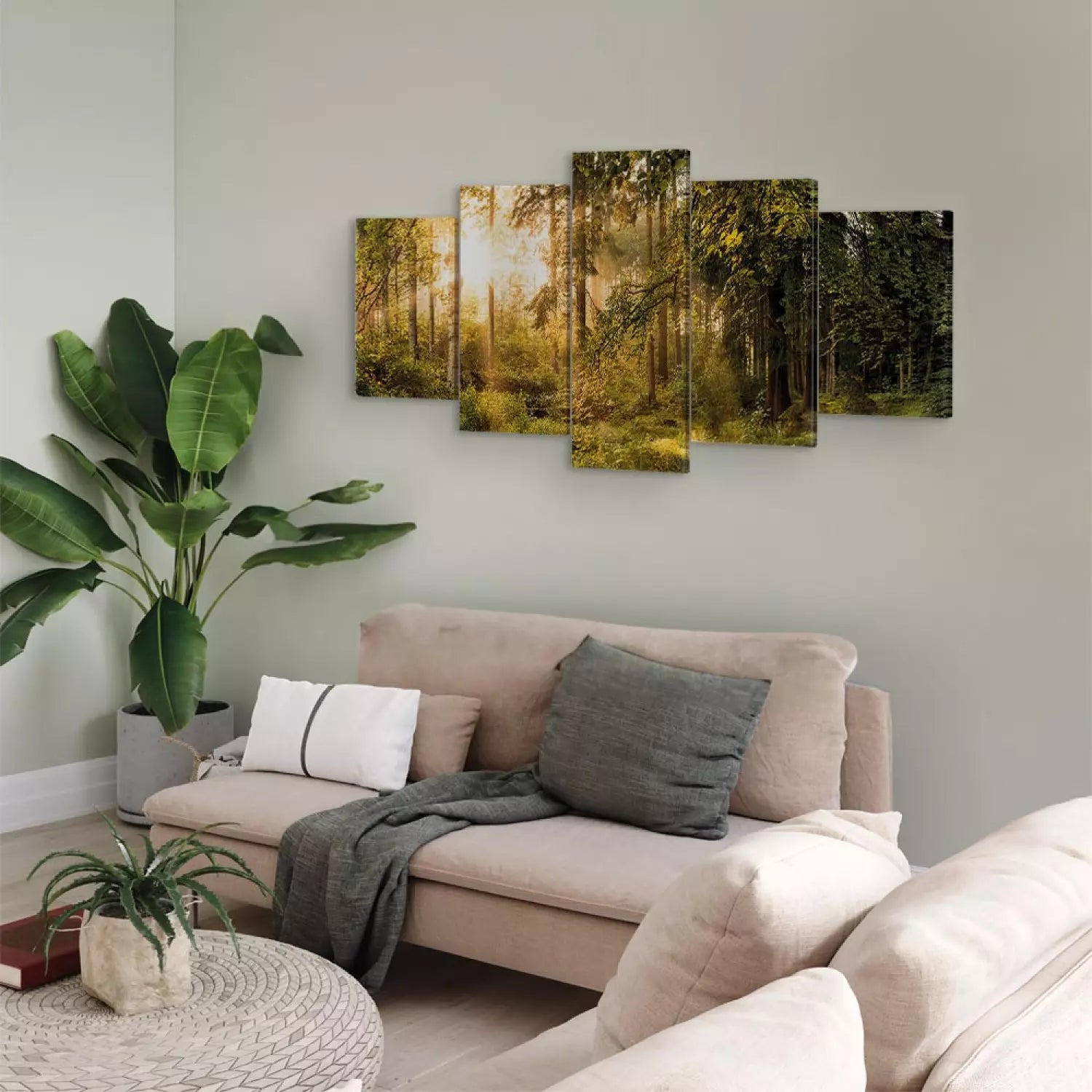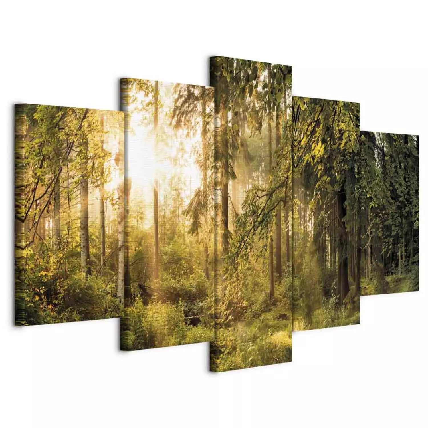 Paveikslai ant drobės su saulėtu mišku - Miško magija, 91573, (x5)
