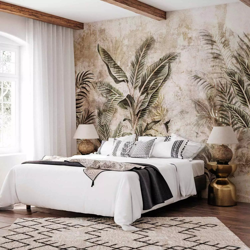Fototapetes ar palmu lapām uz pelēka betona - mierīgai atmosferai G-ART