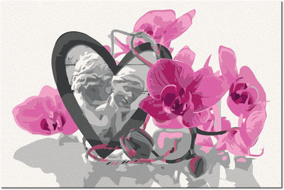 Tapyba pagal numerį - Eņģeļi (sirds un rozā orhideja) 60x40 cm