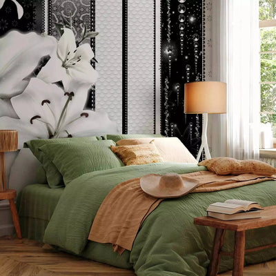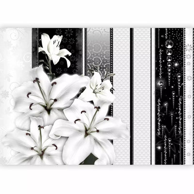 Fototapetai - Baltos lelijos juodai baltame vintažiniame fone, 64340
