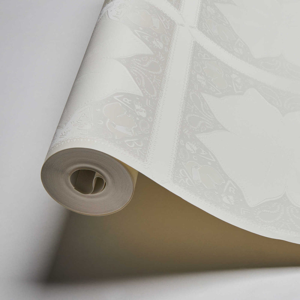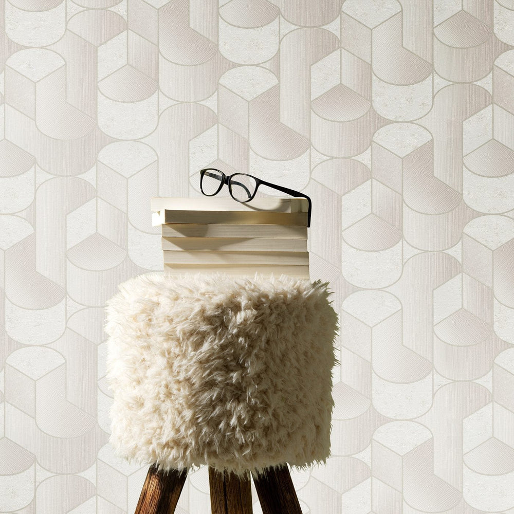 Art Deco tapetes ar ornamentu un ģipša izskatu bēšos toņos 380943 Tapetenshop.lv