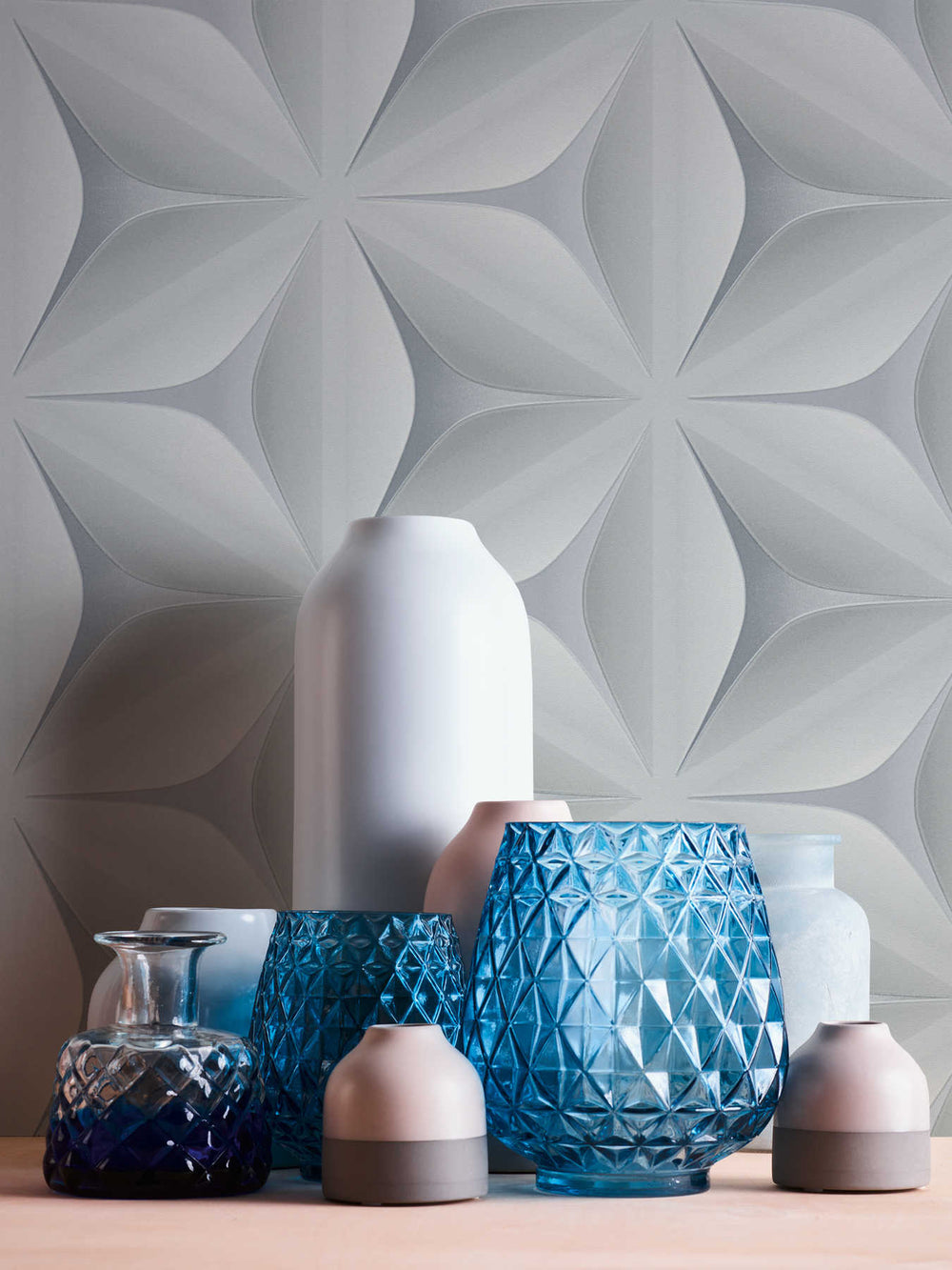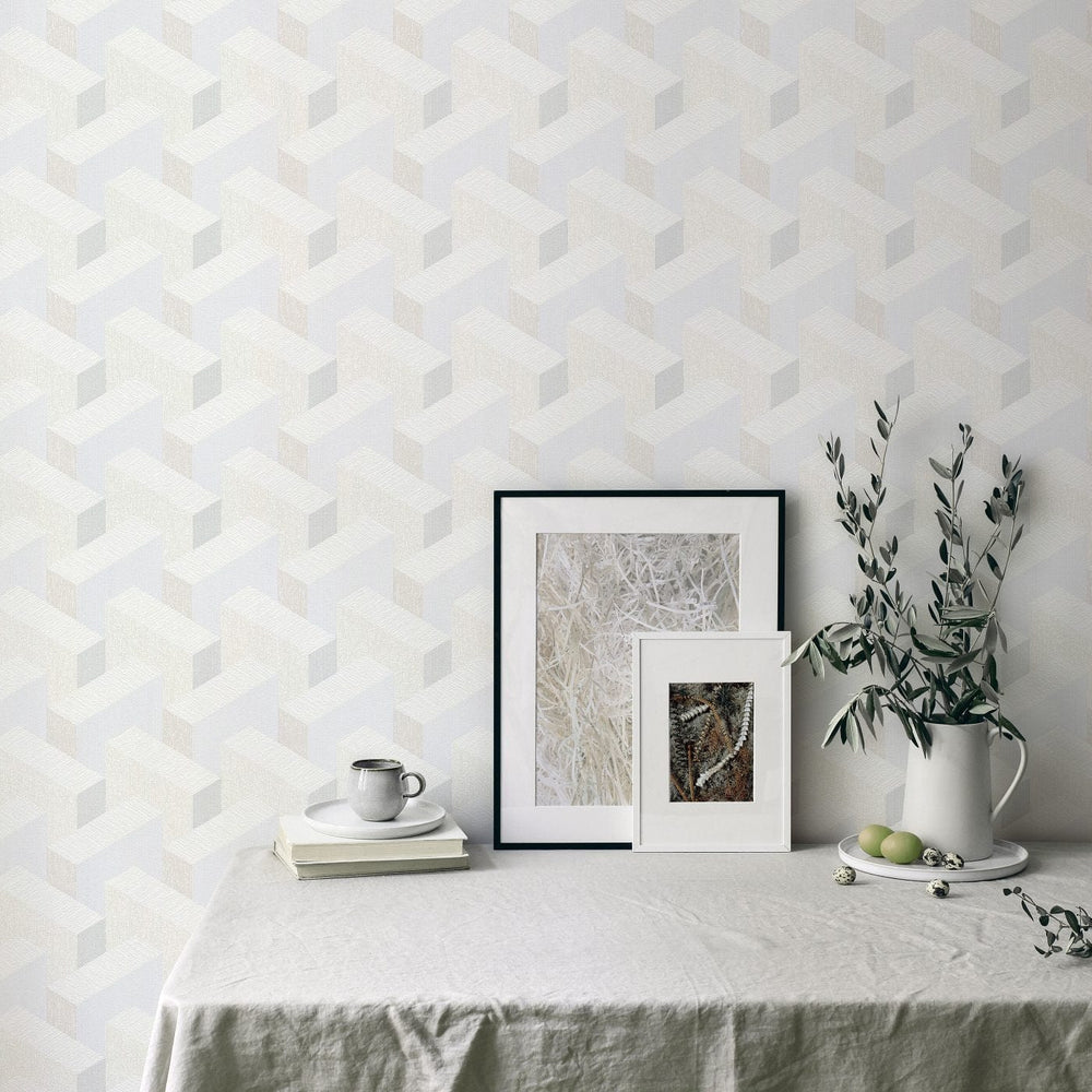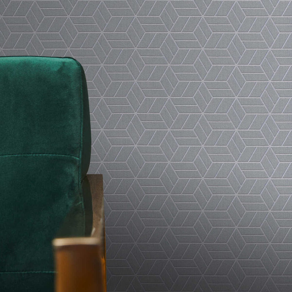 Dizainas Tapetai su geometriniu 3D raštu, šviesiai pilka, 3675403