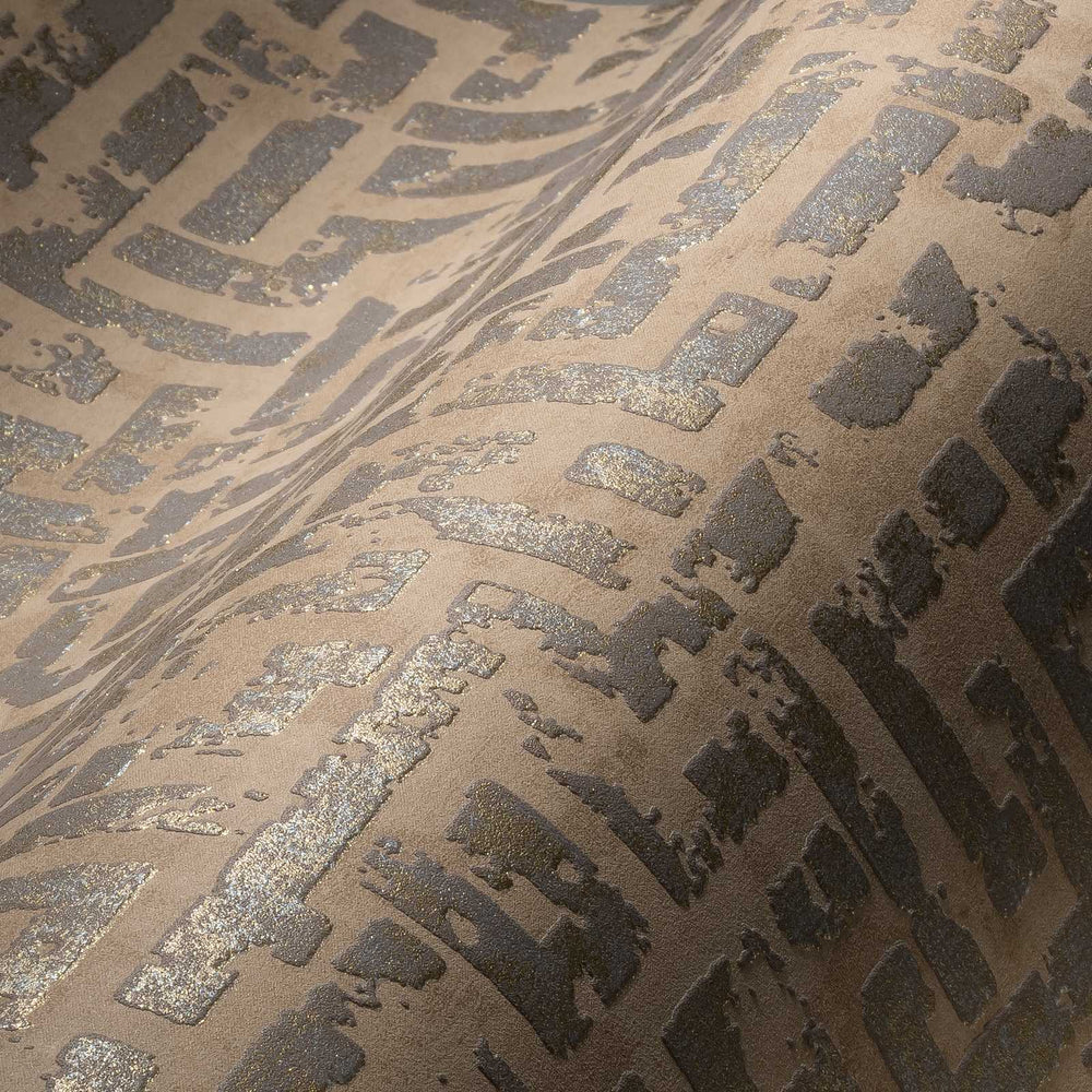 Tapetes ar grafisku rakstu un perlamutra efektu zeltā un melnā krāsā RASCH