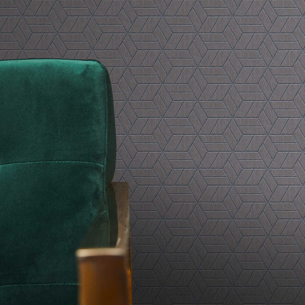 Tamsiai pilkos spalvos tapetai su grafiniu 3D raštu, Erismann, 3751322