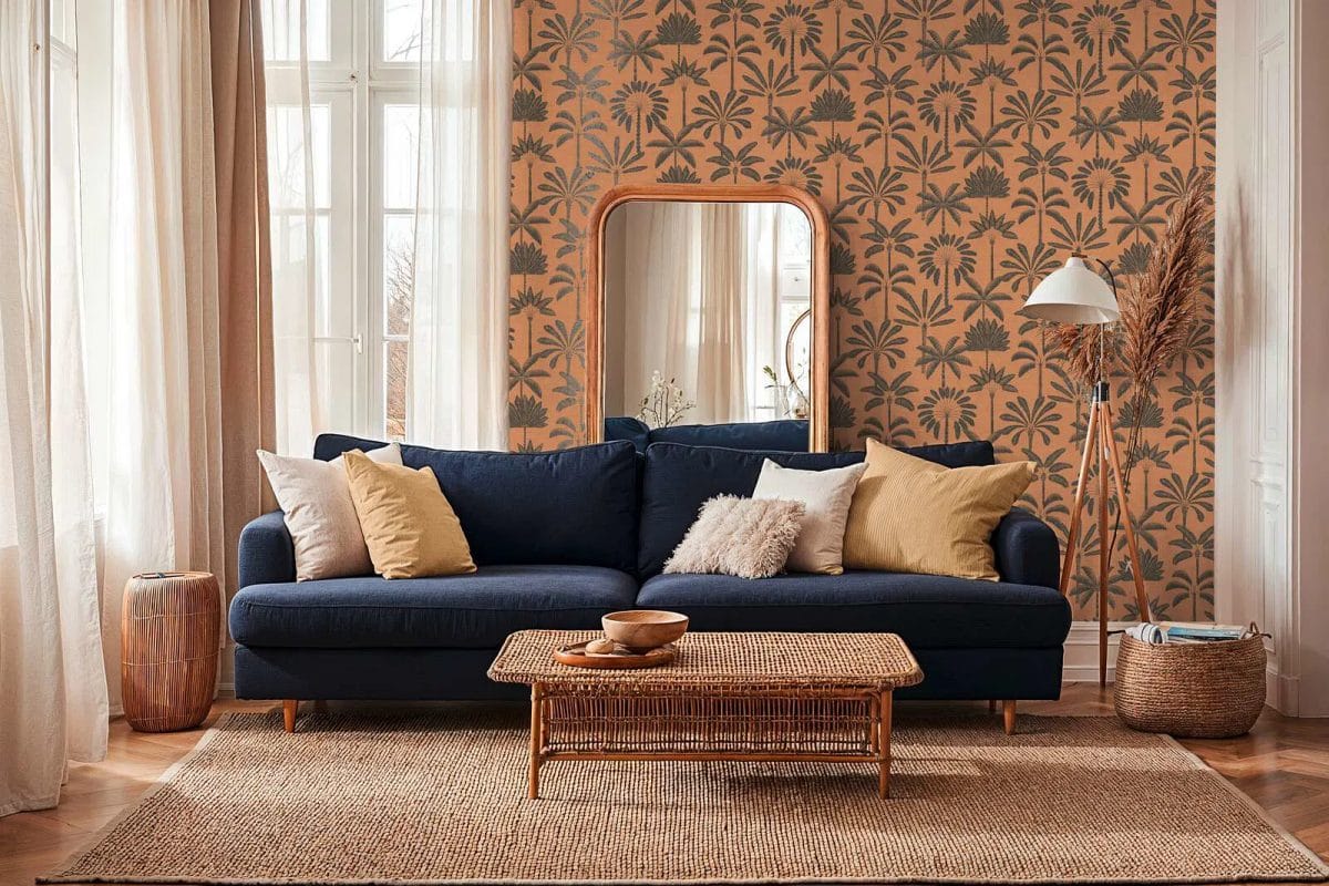 Šiltos ir energingos tapetai su išraiškingu palmių lapų dizainu. Jos yra praktiškos ir lengvai prižiūrimos. Rašto kartojimas (53 cm) užtikrina sklandų tropinį peizažą. Smėlio ir oranžinės spalvos primena saulėlydžio šviesą, užpildydamos kambarį jaukumu ir šiluma. Šiek tiek blizgus paviršius sustiprina šį saulėtą efektą. Šios tapetai bus puikus akcentas kambariuose, kuriems reikia daugiau gyvybingumo ir šviesos.