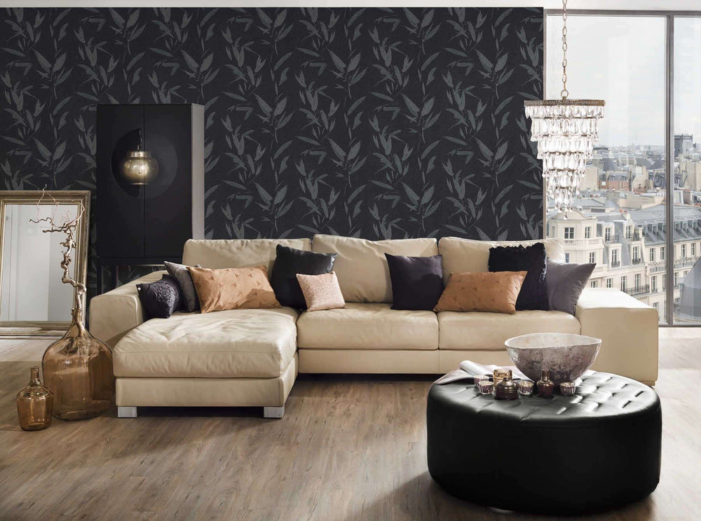 Tapetes abstraktam lapām un tekstila imitāciju - pelēkā krāsā 375492 AS Creation