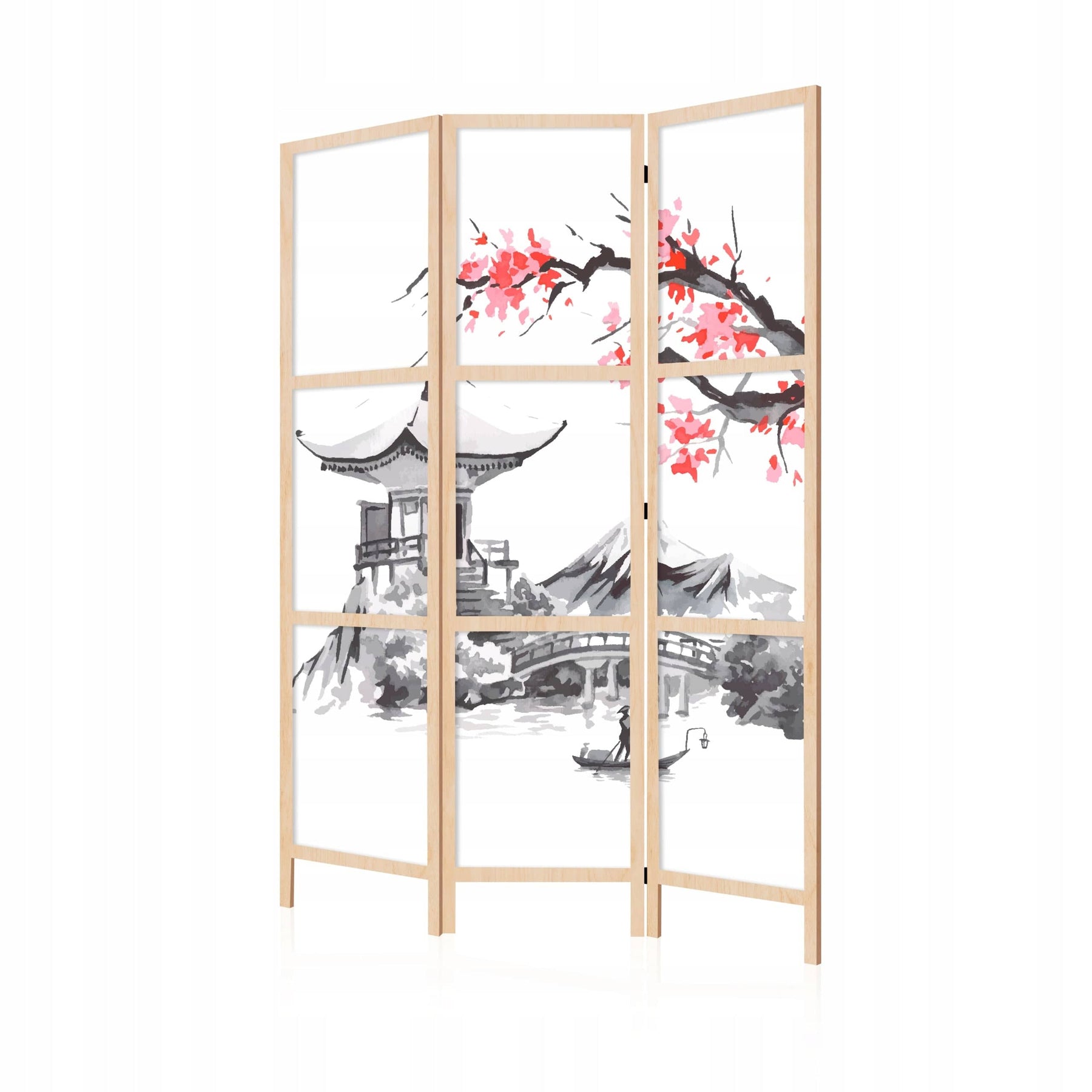 Dekoratyvinė japonų širma, vienpusė, 135x172, Japonijos peizažas su sakuromis