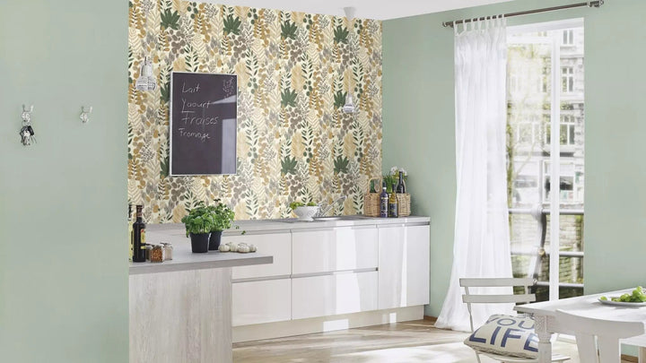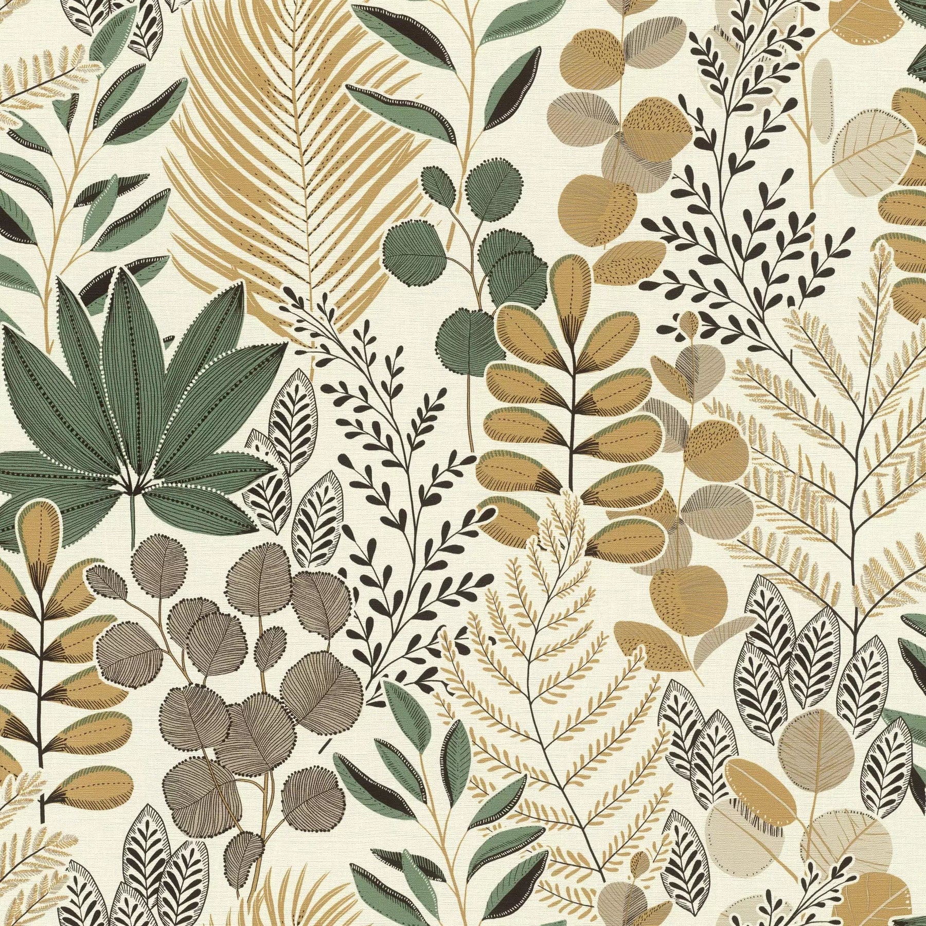 Tapetai RASCH - įvairūs šiltų žalių ir rudų tonų lapai, 1614666