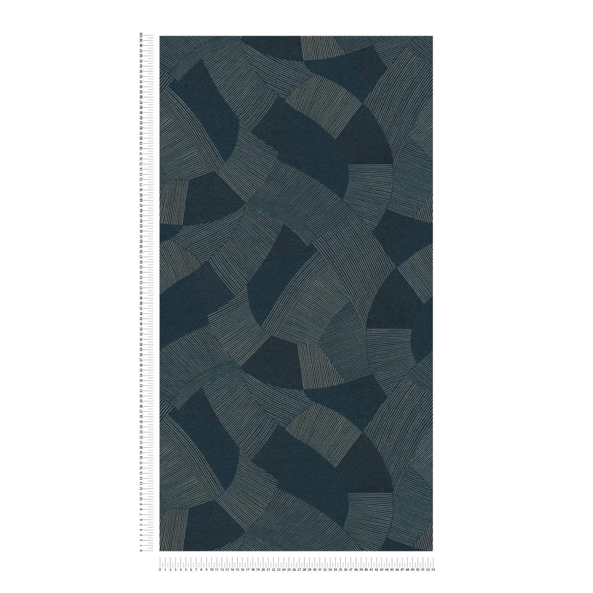 Prabangūs tapetai su giliu atspalviu ir švelniu blizgesiu. Didelis atsparumas dilimui leidžia jas valyti šepečiu ir muiluotu vandeniu, išsaugant spalvų šviežumą. Raštų suderinimas (64 cm) yra paprastas ir užtikrina sklandų dizainą. Tamsiai mėlyna spalva, derinama su geometriniu linijų raštu, sukuria išskirtinę ir raminančią atmosferą. Apskritimo segmentai ir linijų grafika išsiskiria ant tamsaus fono su subtilaus blizgesio, primenančio Art Deco eleganciją. Ideali pasirinkimas miegamajam ar svetainei, norint sukurti intymią ir stilingą aplinką.
