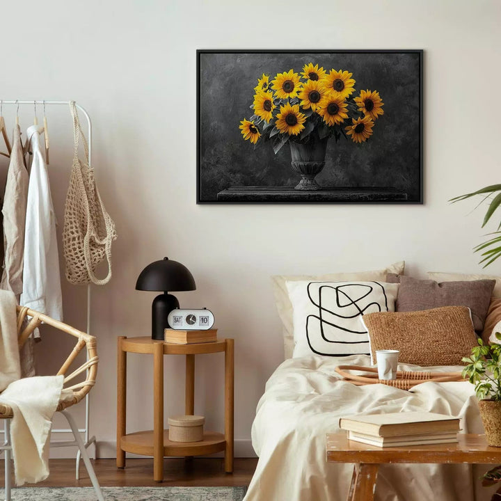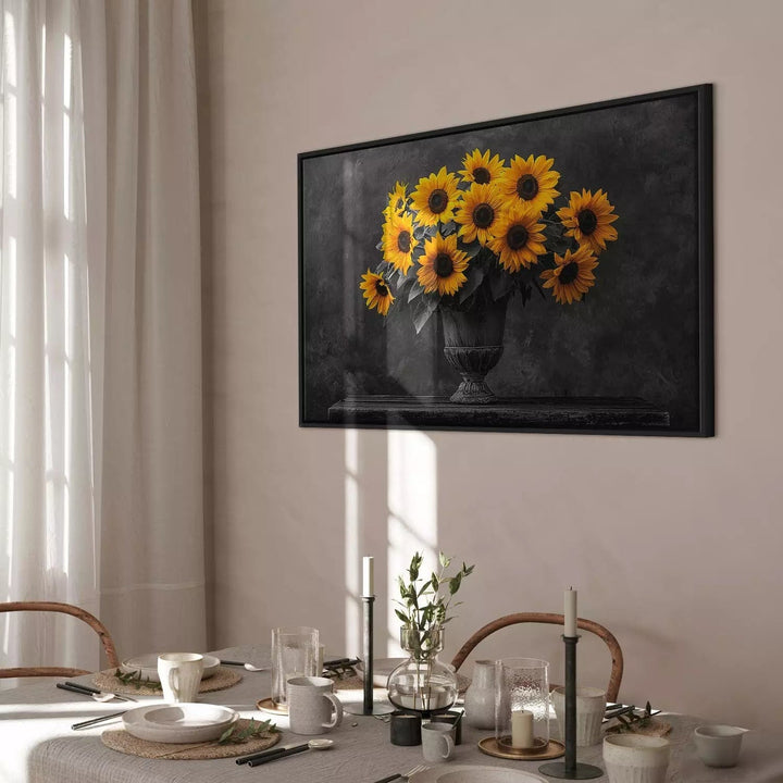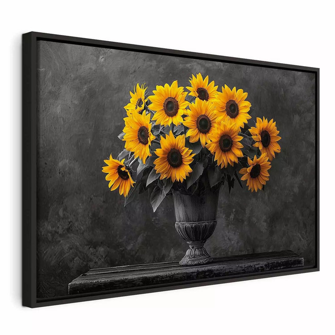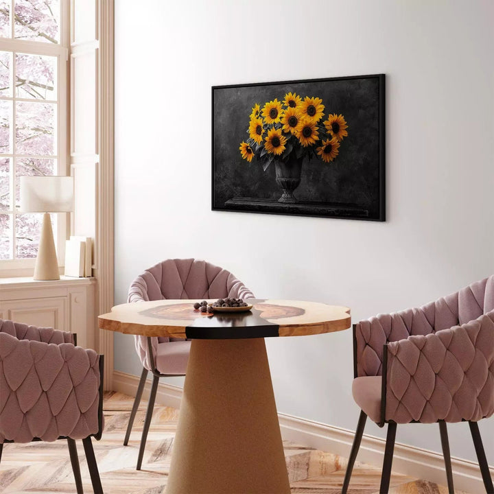 Paveikslas juoduose mediniuose rėmuose - Saulėgrąžos juodame fone, 162558