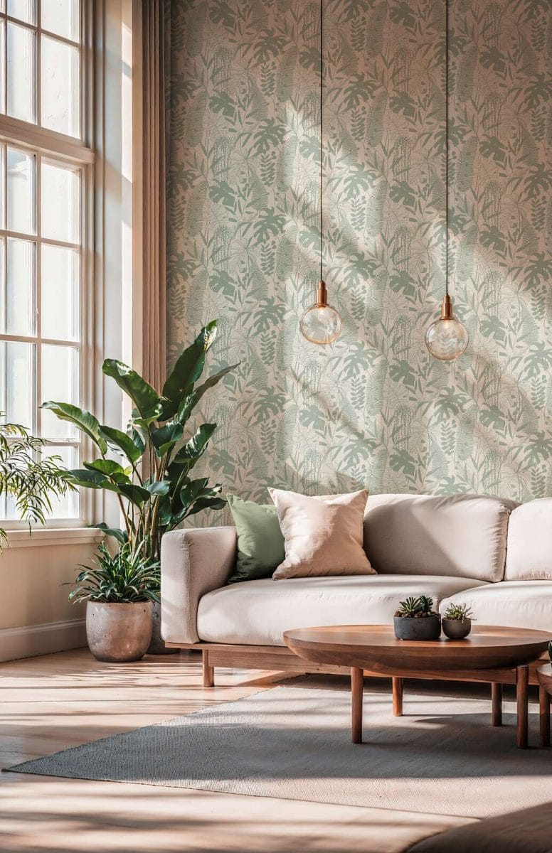 Šiuolaikinės tapetai su organiškomis augalų formomis ir subtiliai blizgiu paviršiumi. Jos lengvai prižiūrimos ir skirtos ilgalaikiam naudojimui. Raštas kartojasi kas 53 cm. Žalios ir pilkos spalvų derinys yra šaltas, modernus ir raminantis. Jis puikiai dera su betono, stiklo ar metalo interjero elementais, suteikdamas pramoninei ar moderniai aplinkai gamtos akcentą.