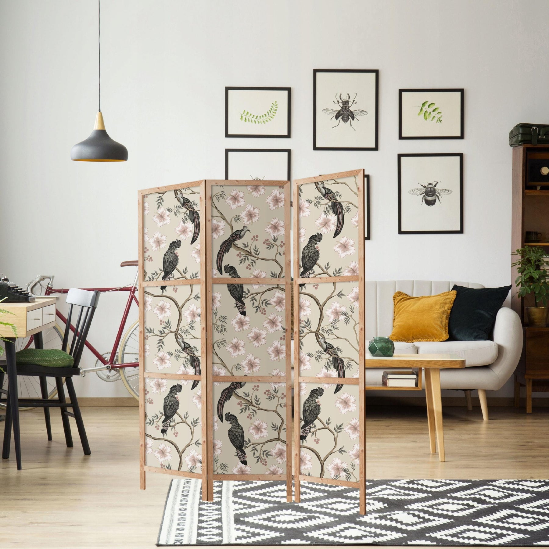 Dekoratyvinė japonų širma, vienpusė 135x172, Egzotiški paukščiai ir rožinės gėlės