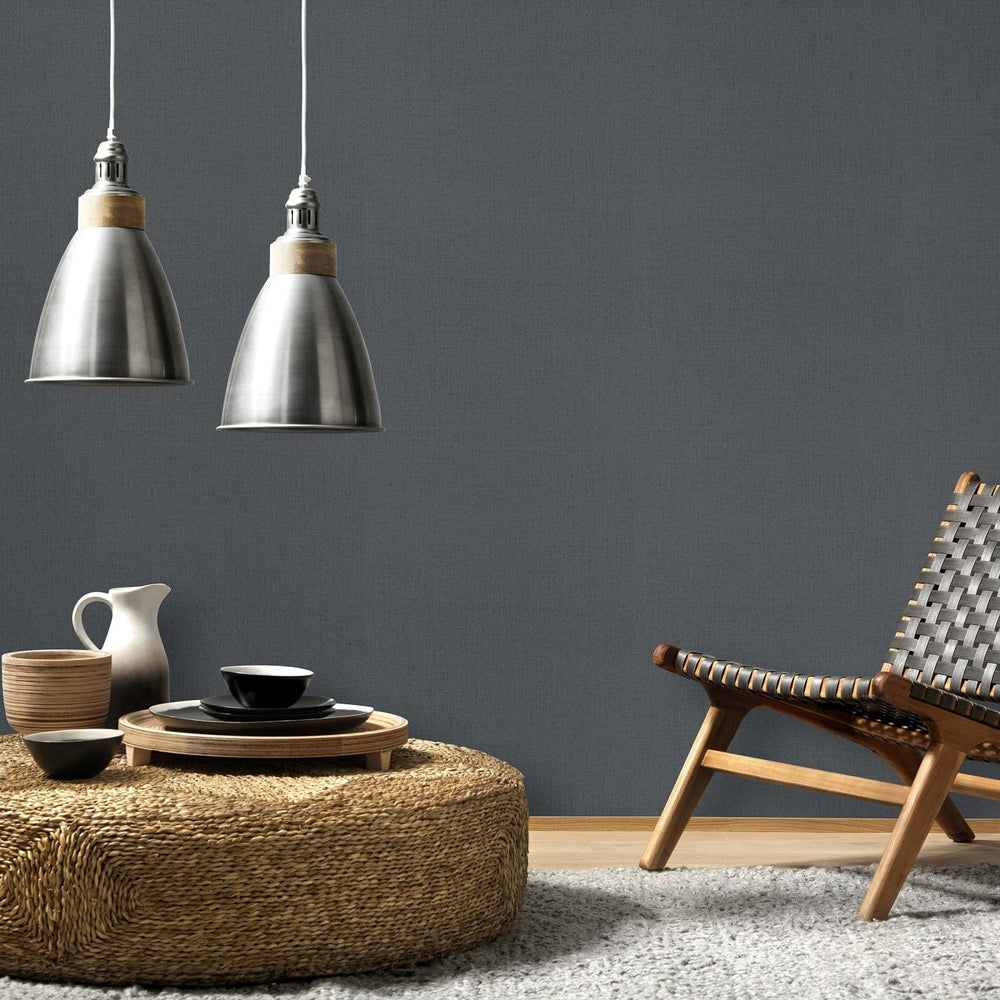 Ekologiški tapetai su tekstilės tekstūra, juodos spalvos - 3747213, Be PVC 🌿