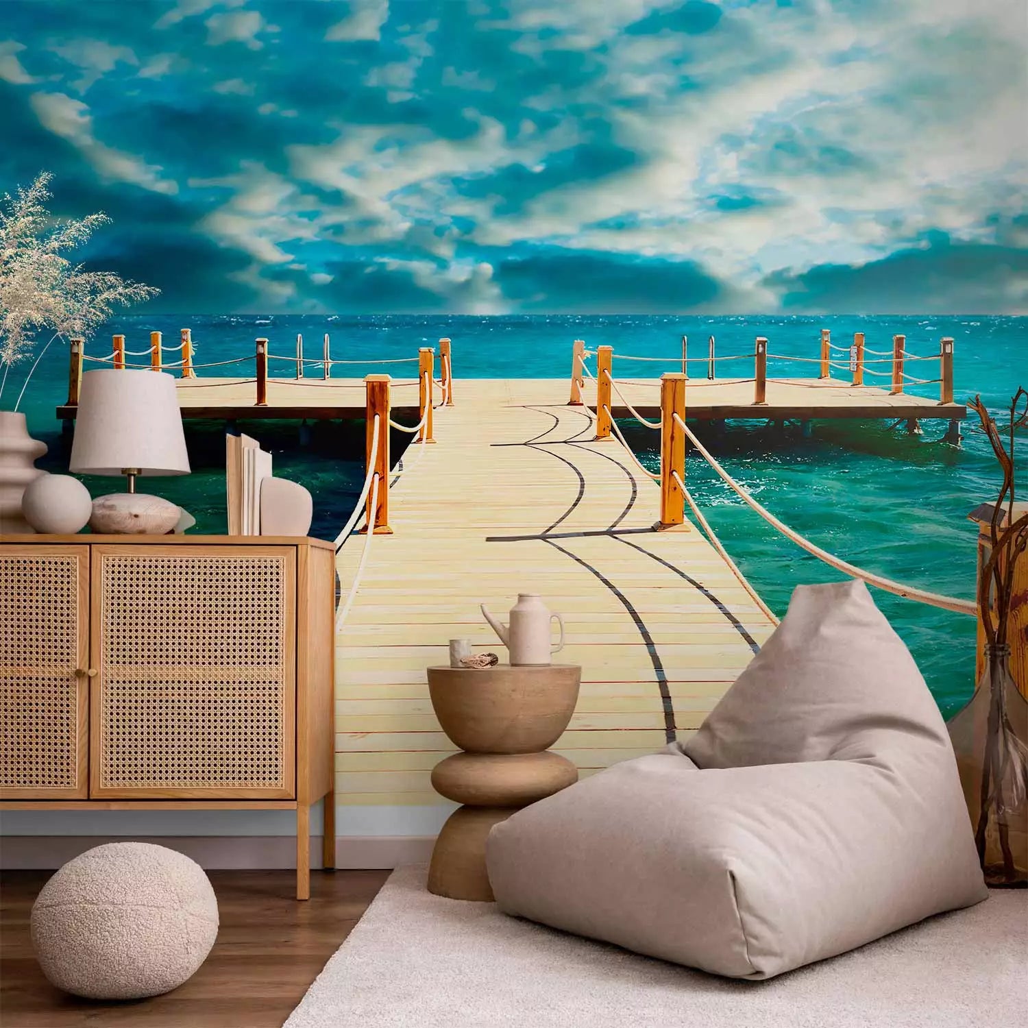 Fototapetai - Begalinis mėlynas vandenyno vanduo ir debesys virš jo, 151019