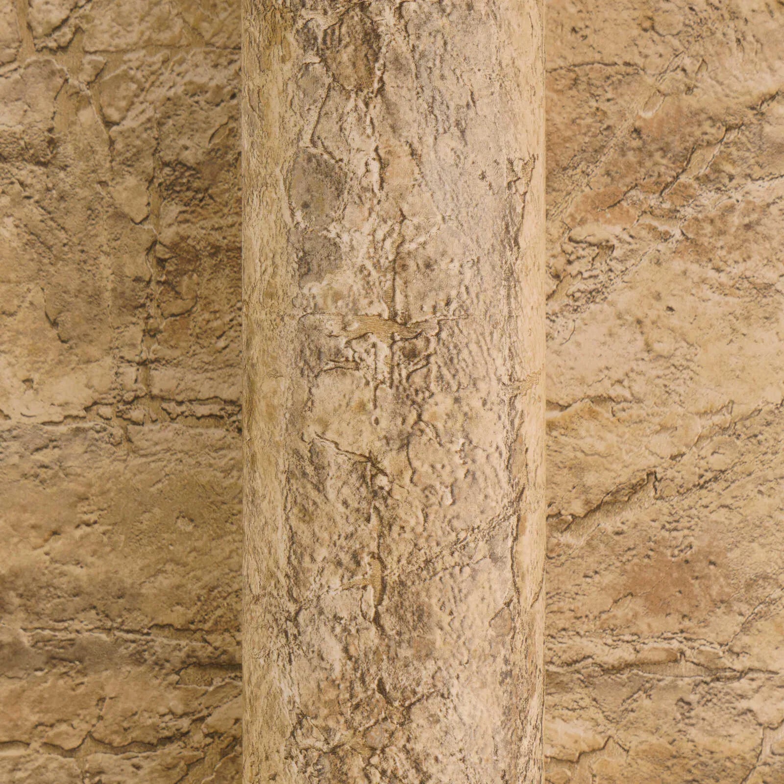 Šių tapetų motyvas primena grubiai tekstūruotą, išblukusią akmens ar betono paviršių. Raštas atrodo natūralus ir nelygus, su plonais įtrūkimais, lūžiais ir šiek tiek niuansuotais atspalviais, primenančiais nuosėdinių uolienų sluoksnius. Spalvų paletė yra santūri ir žemiška, ją sudaro įvairūs pilkos, smėlio ir pilkai rudos atspalviai, kurie harmoningai dera tarpusavyje, sukurdami natūralų, nepretenzingą vaizdą. Bendras vaizdas sukuria drėgną, urbanistinę estetiką su pramoniniu atspalviu, bet tuo pačiu metu jis yra šiltas ir raminantis. Realistiškas akmens vaizdas sukuria įdomų gylio efektą, kuris suteikia patalpai charakterį ir loftą primenančią atmosferą.