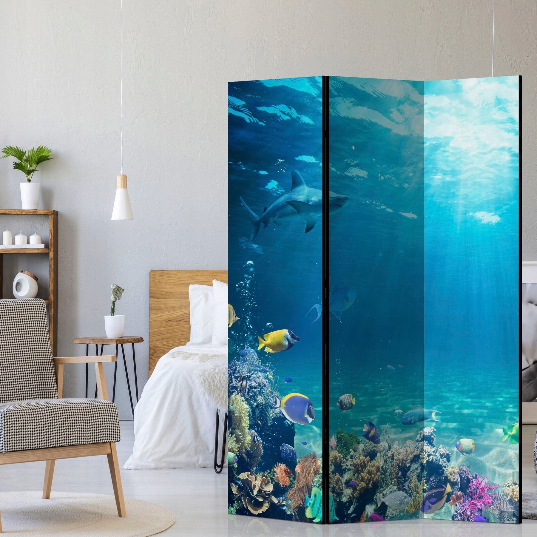 Dekoratīvs vienpusējs aizslietnis, 135x172, Zemūdens pasaule, Tropiskie zivtiņi un haizivs