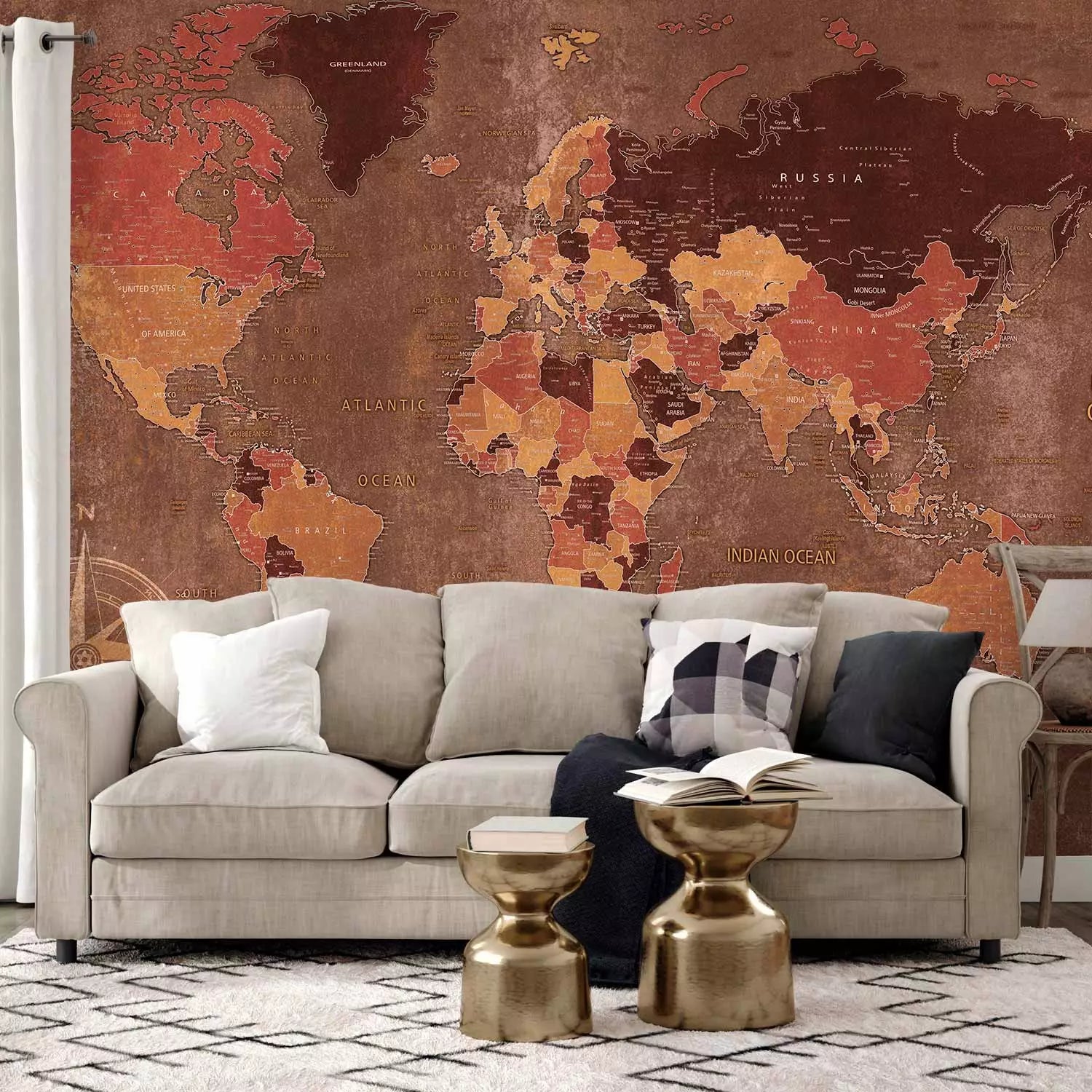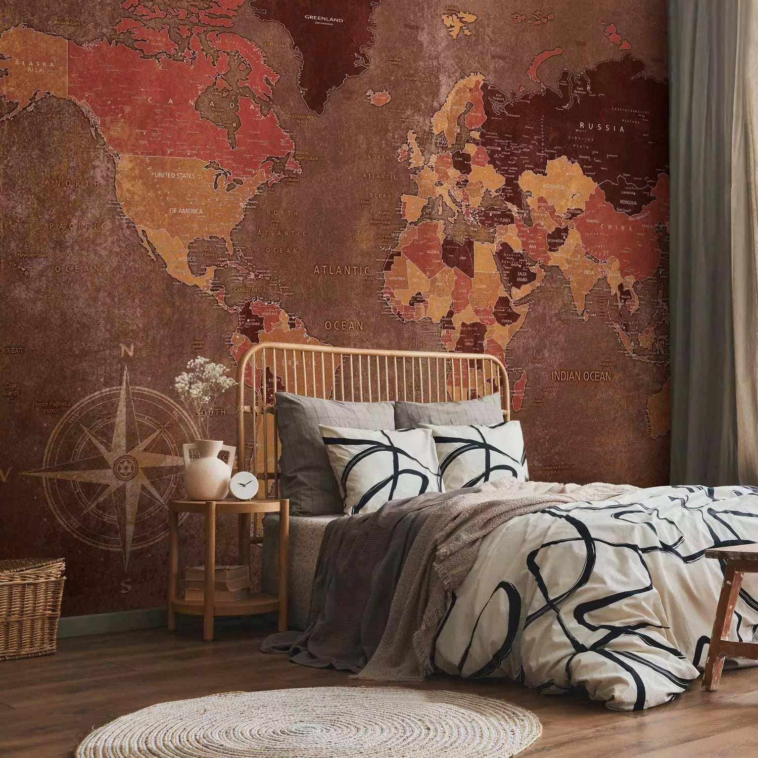 Fototapetes ar kontinentiem uz neviendabīga fona ar kompasu stūrī, 91660